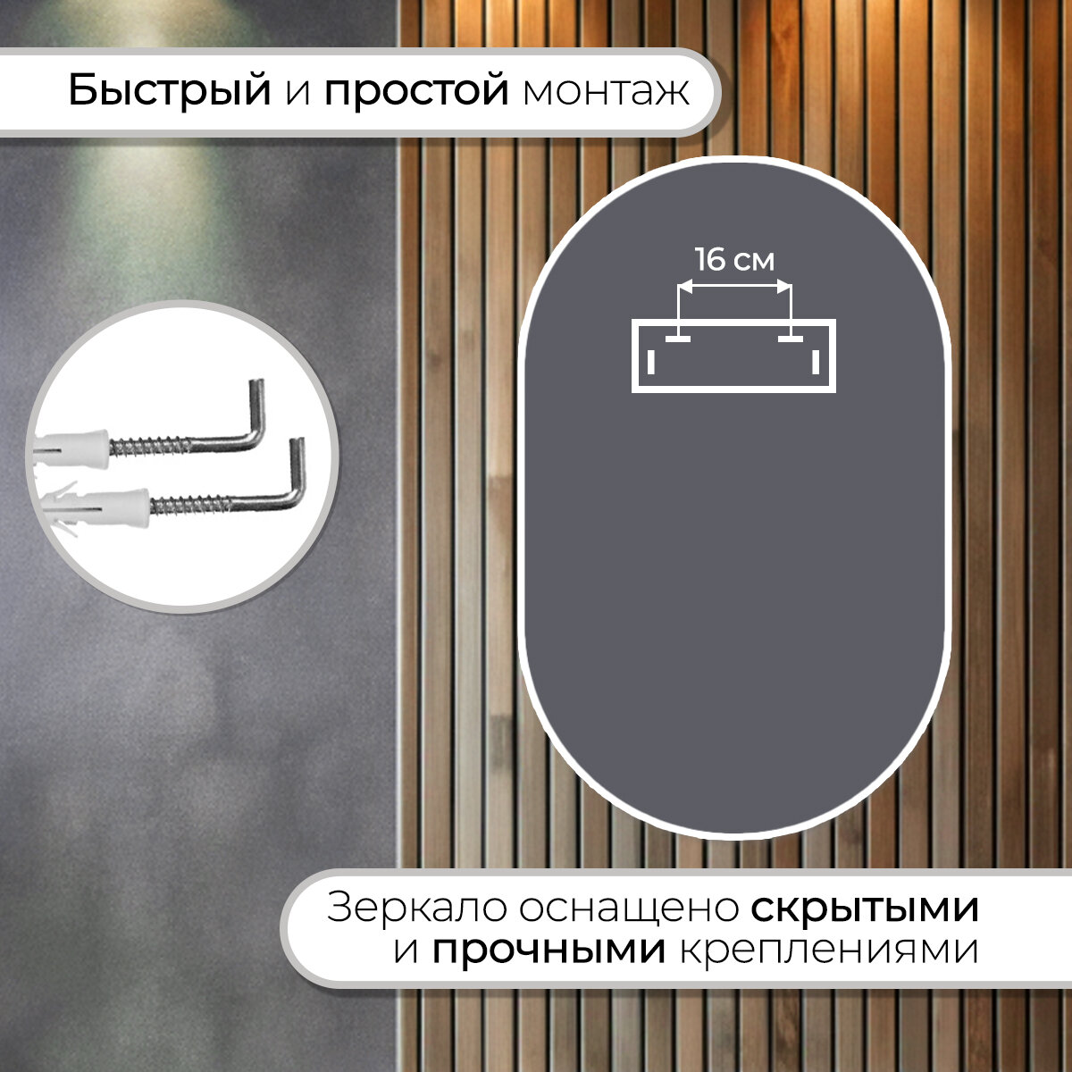 Зеркало в форме капсулы для ванной с подсветкой MAKELI 77х45 см