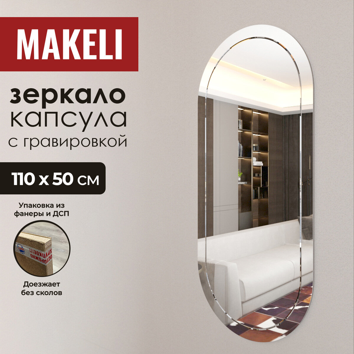 Купить Зеркало настенное капсульное Makeli с гравировкой, 110х50 см