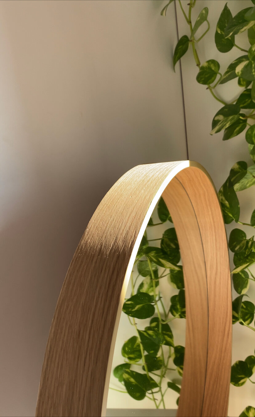 Круглое интерьерное зеркало в деревянной раме 60 х 60 для ванной, прихожей, гостиной, спальни цвета натуральный дуб