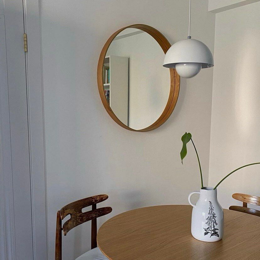 СохранитьКруглое интерьерное зеркало в деревянной раме 80 х 80 для ванной, прихожей, гостиной, спальни цвета натуральный дуб интересное: