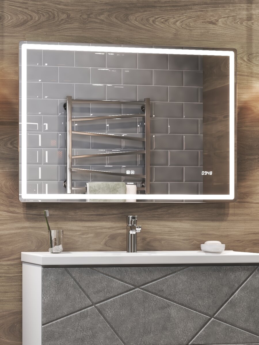 | Особенности | без рамы, без увеличения, подогрев, подсветка, с часами, сенсорный выключатель подсветки |