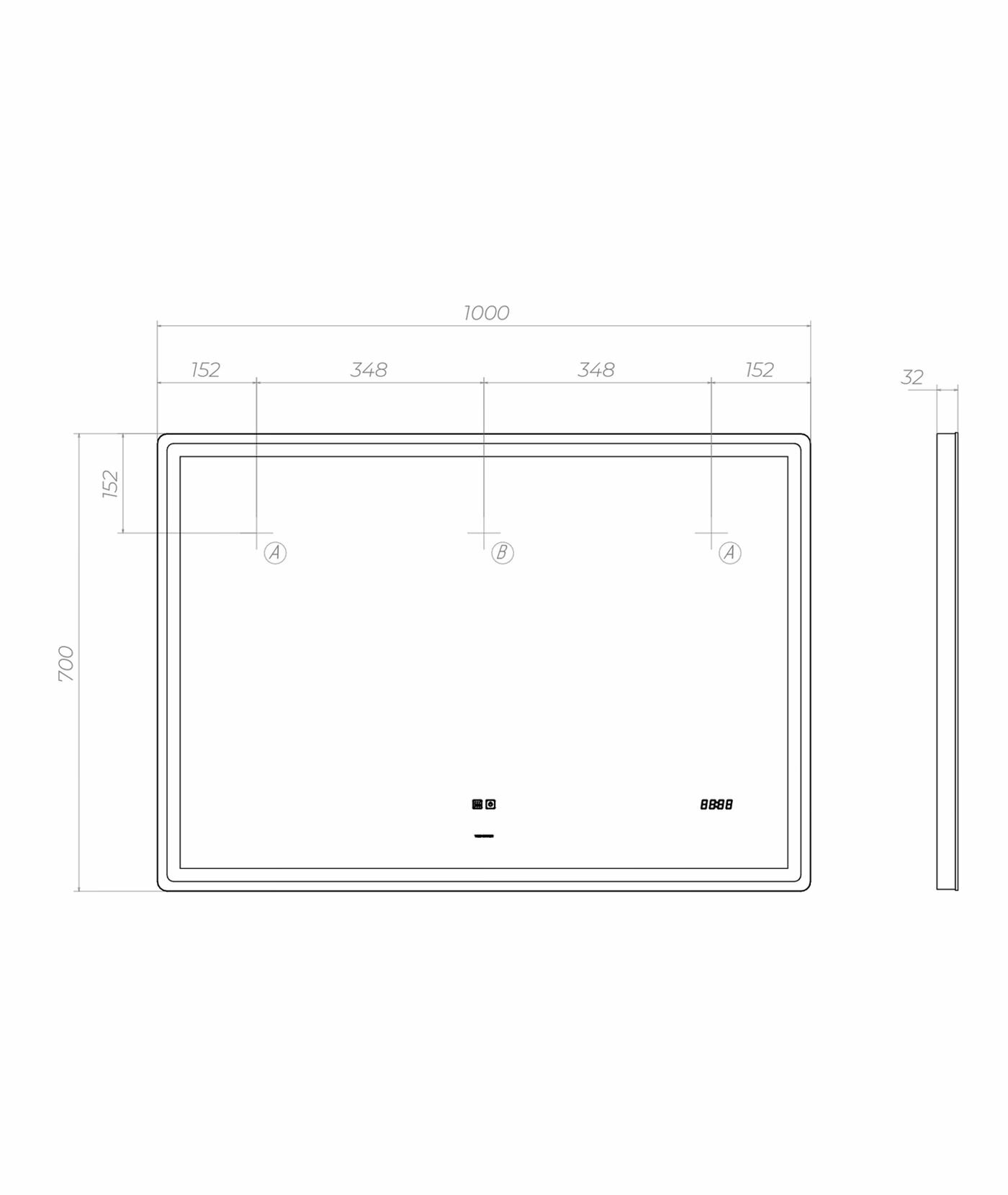 Зеркало с LED-подсветкой, часами и антизапотеванием VIGO GEOMETRY LUXE 1000