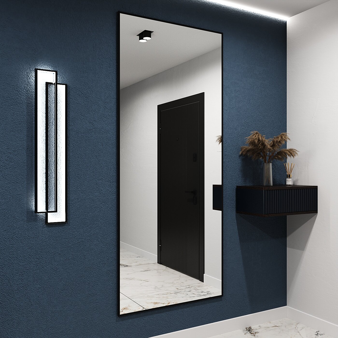 Зеркало настенное в алюминиевой раме ONE MARKET , 190х80 см. Черное