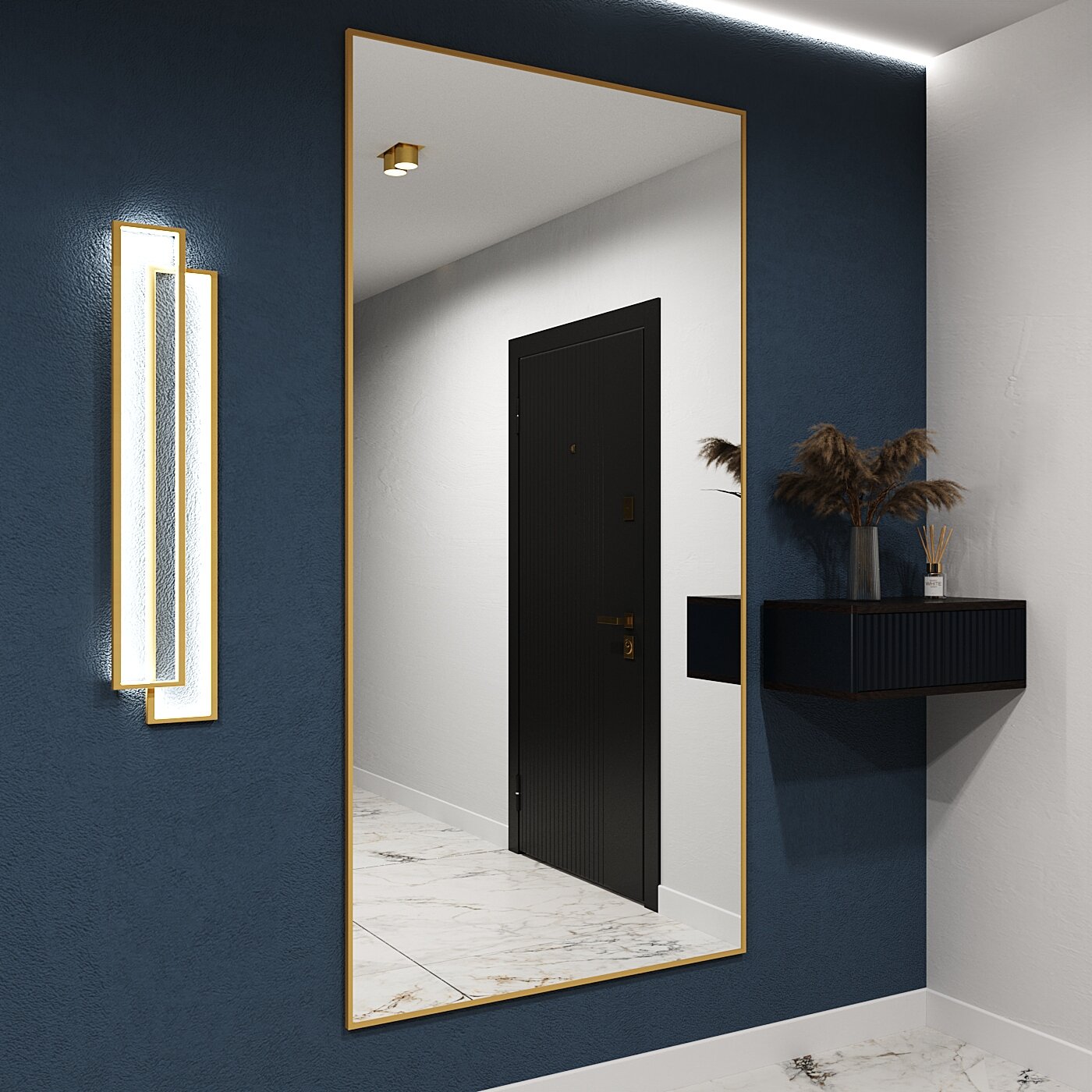 Зеркало настенное в алюминиевой раме ONE MARKET , 190х60 см. Черное