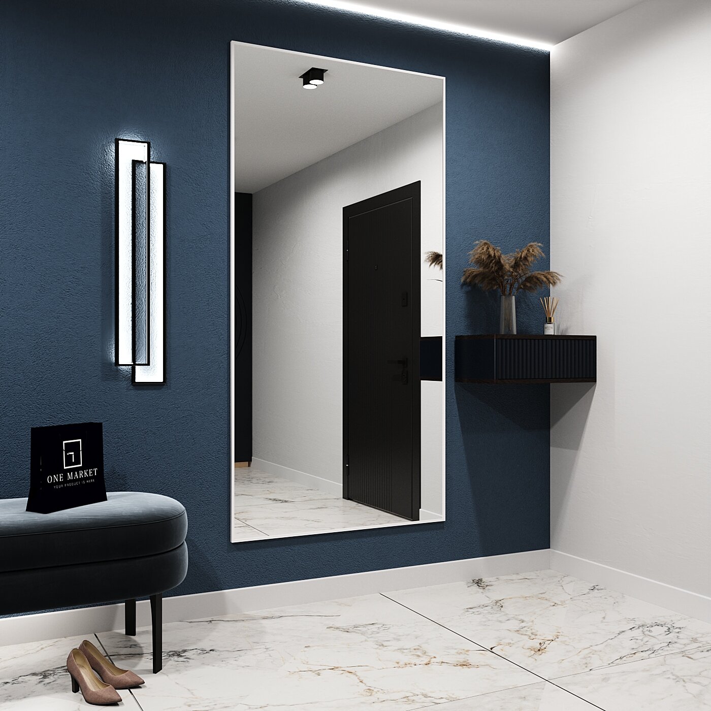 Зеркало настенное в алюминиевой раме ONE MARKET , 190х60 см. Белое