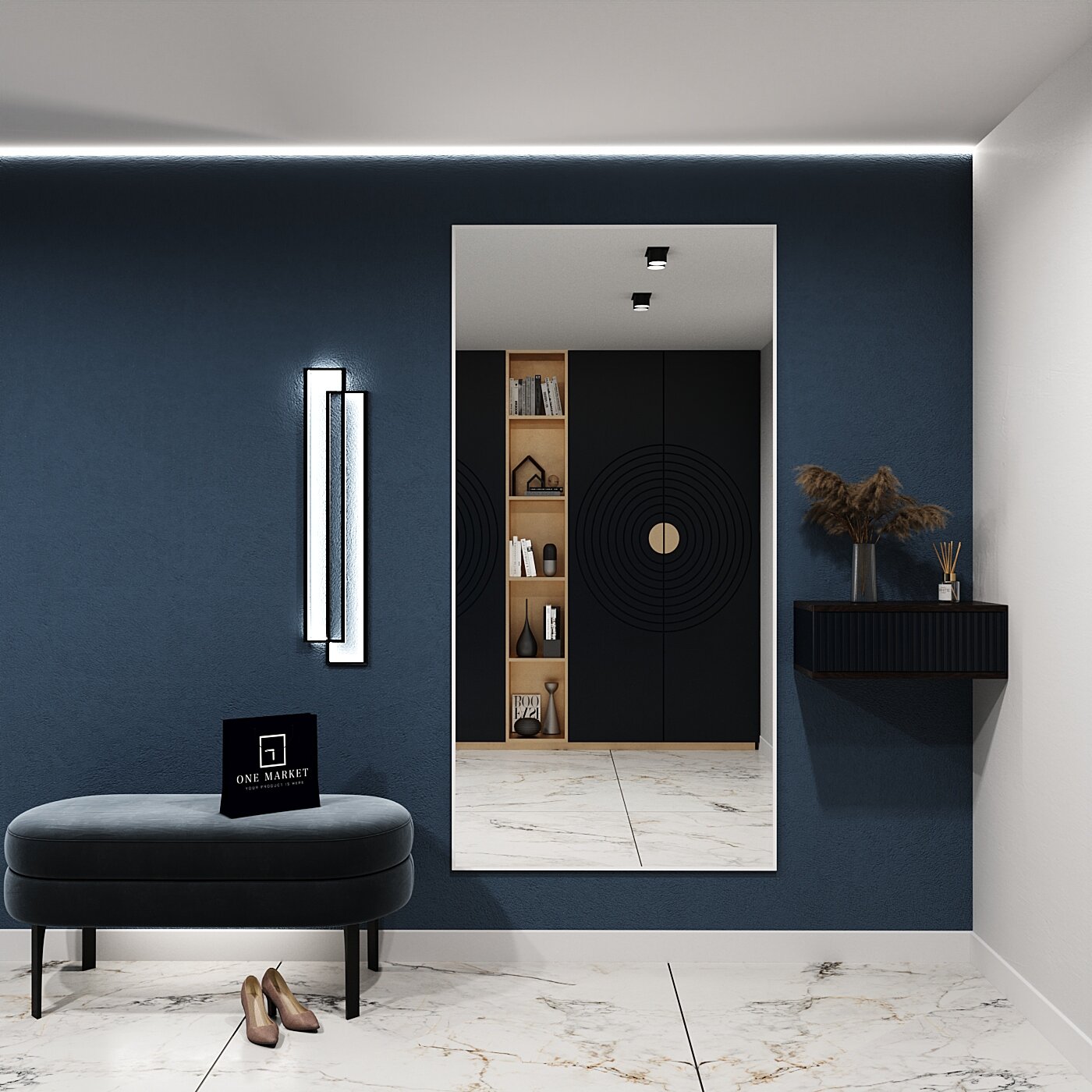 Зеркало настенное в алюминиевой раме ONE MARKET , 190х80 см. Черное