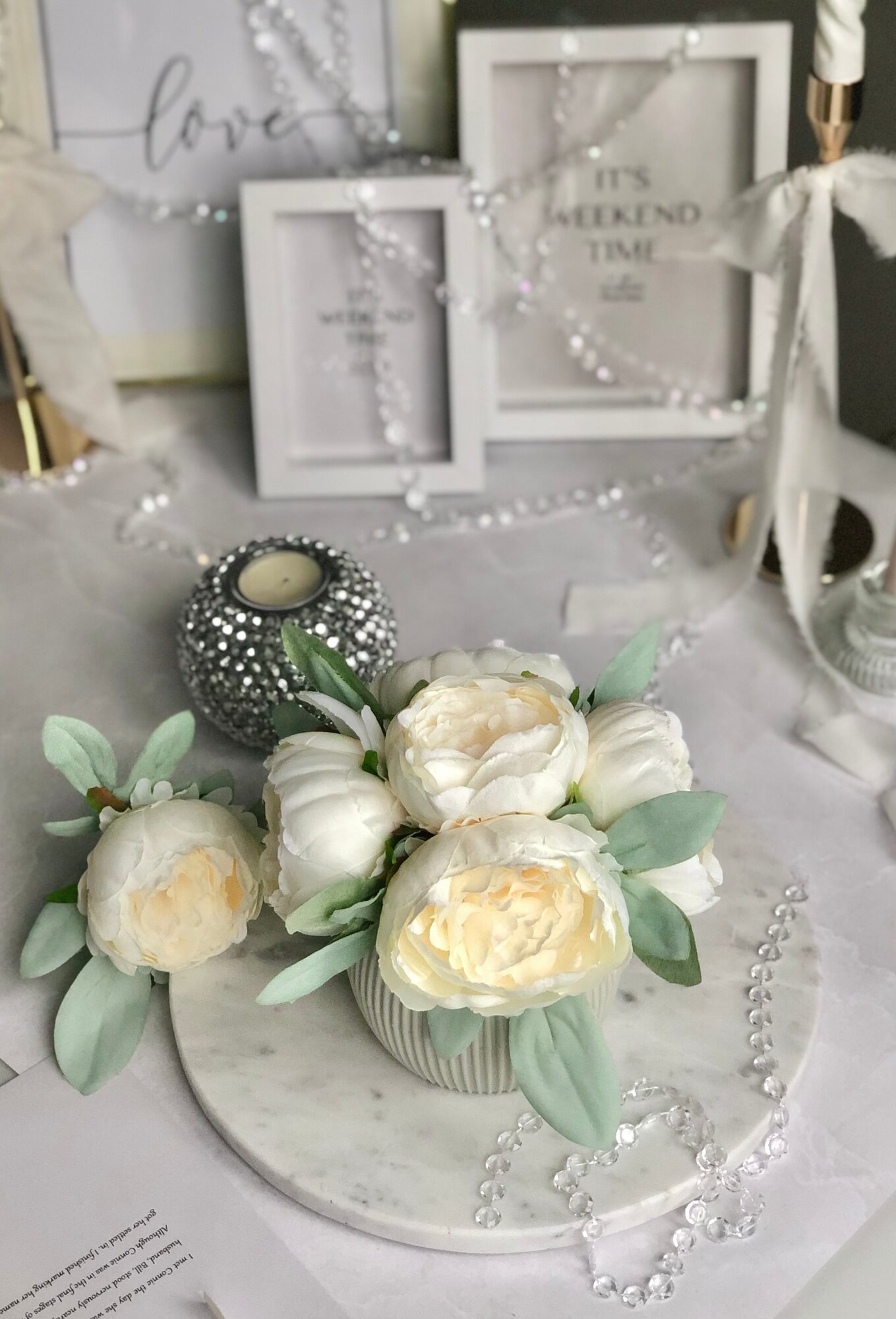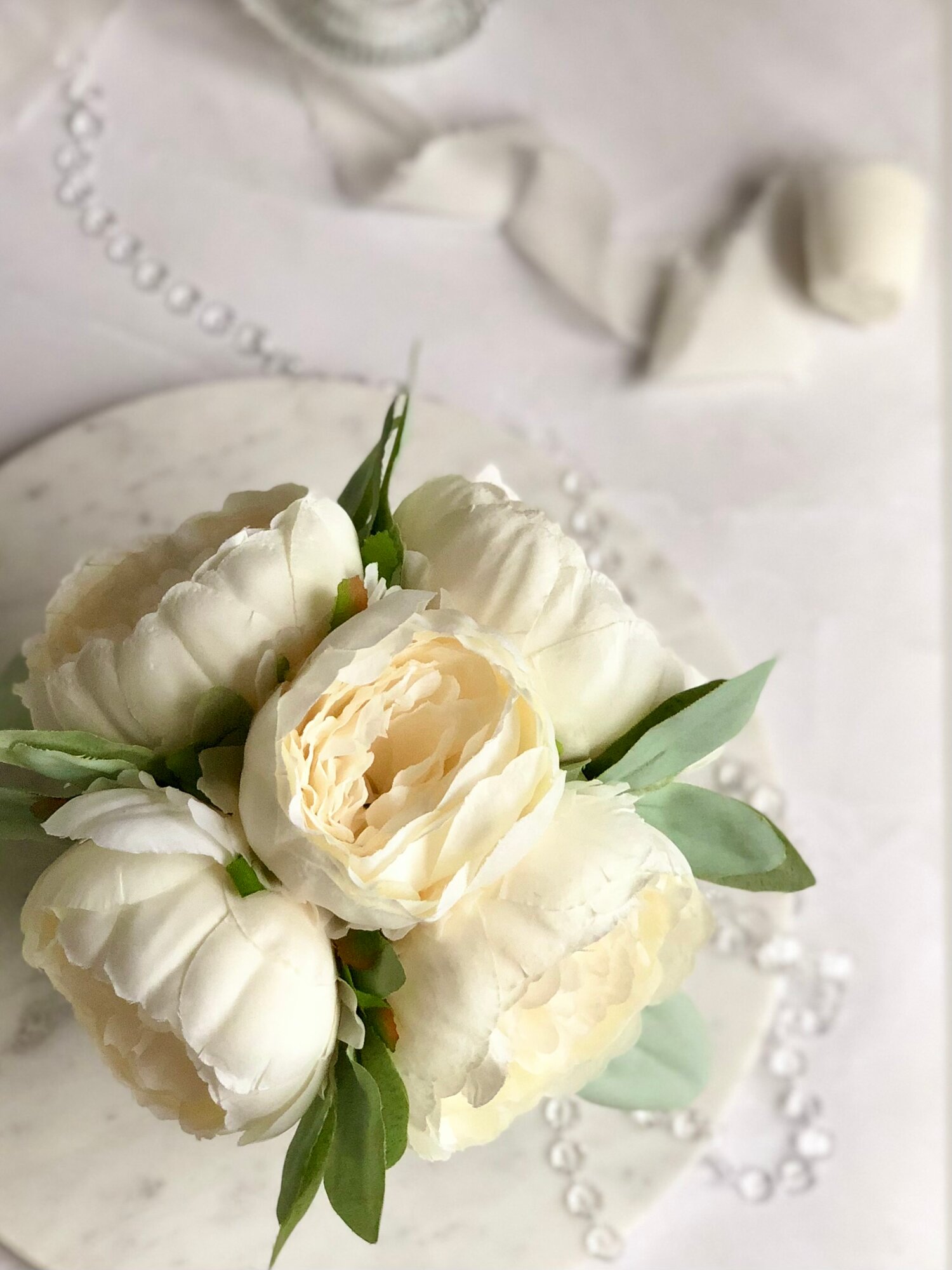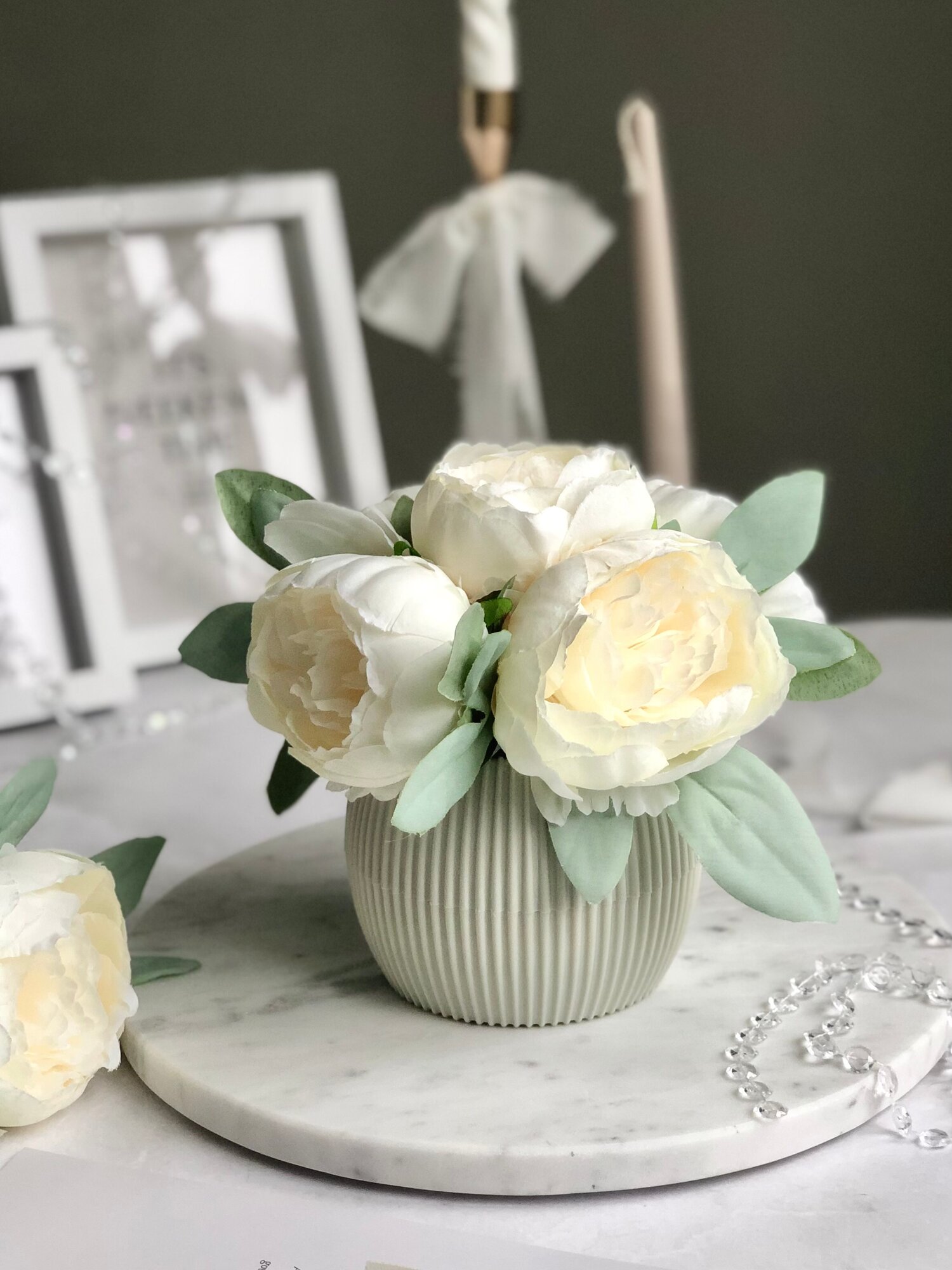 Искусственные пионы в кашпо / Искусственные цветы в горшке / Цветочная композиция для декора, 18 см, белый