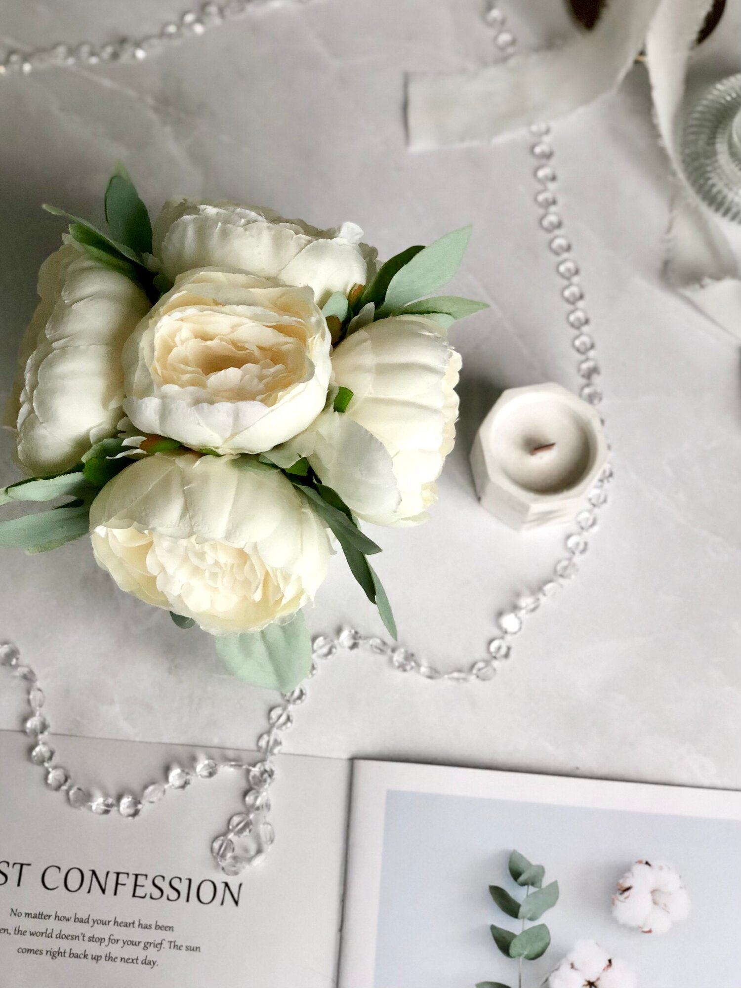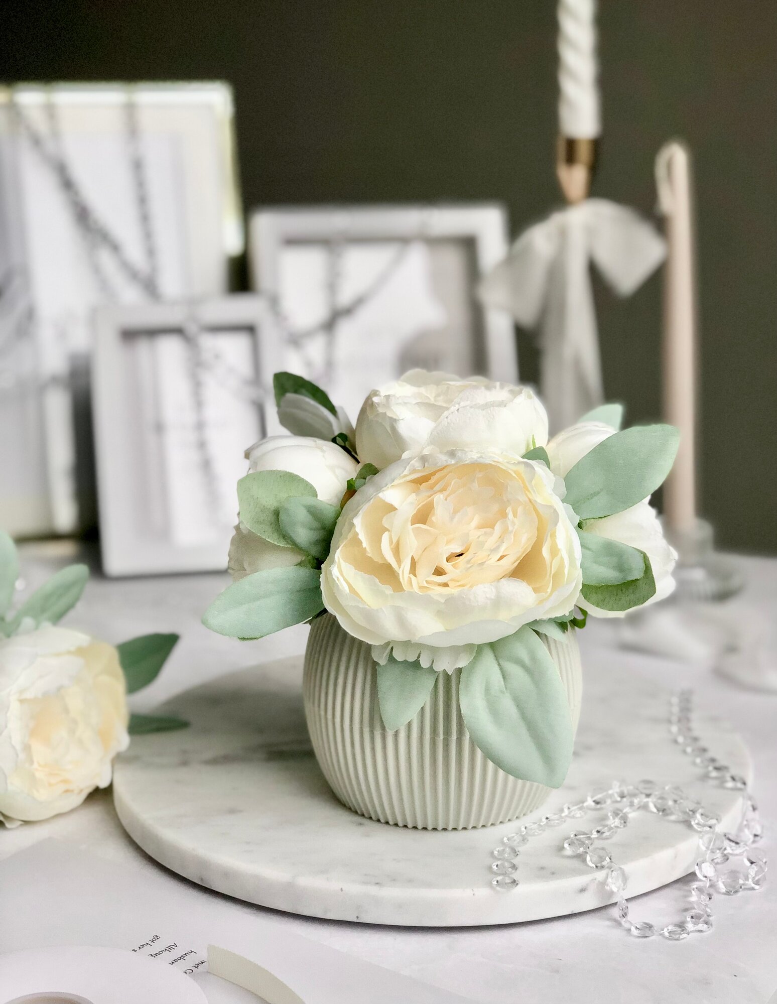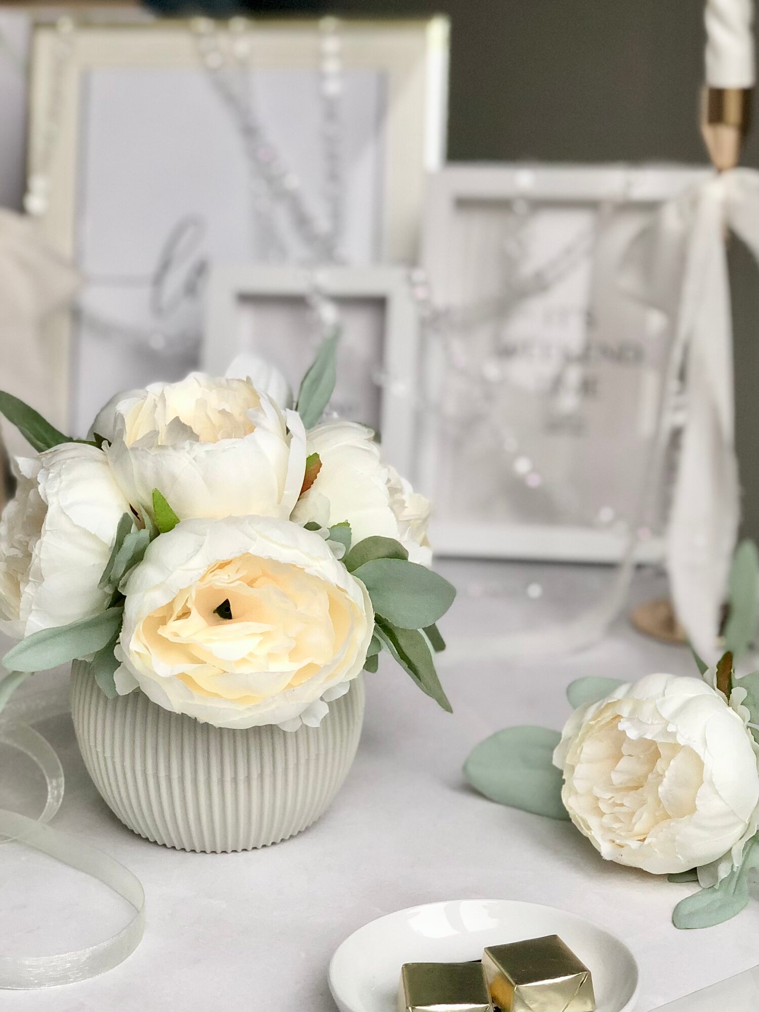 Искусственные пионы в кашпо / Искусственные цветы в горшке / Цветочная композиция для декора, 18 см, белый