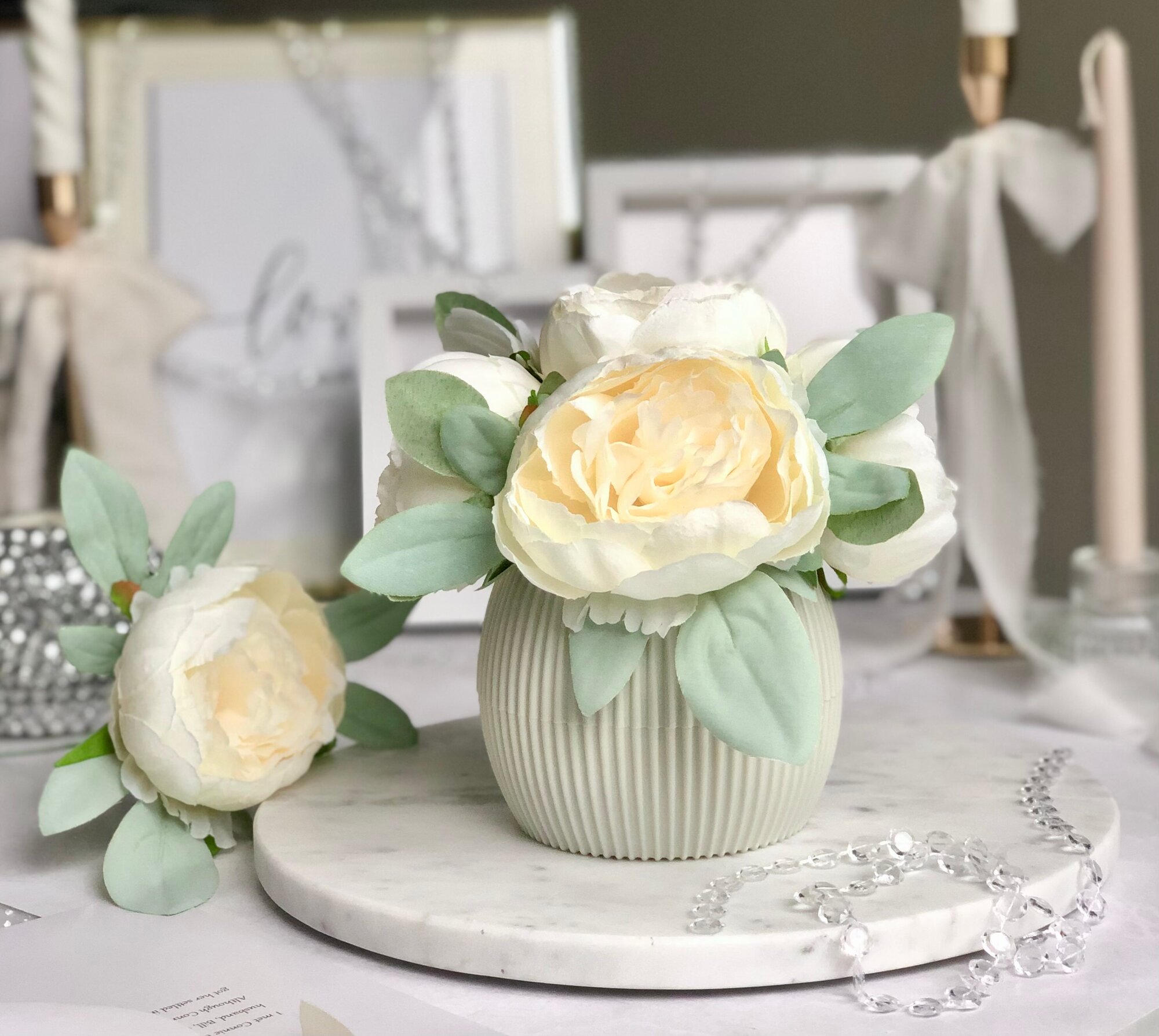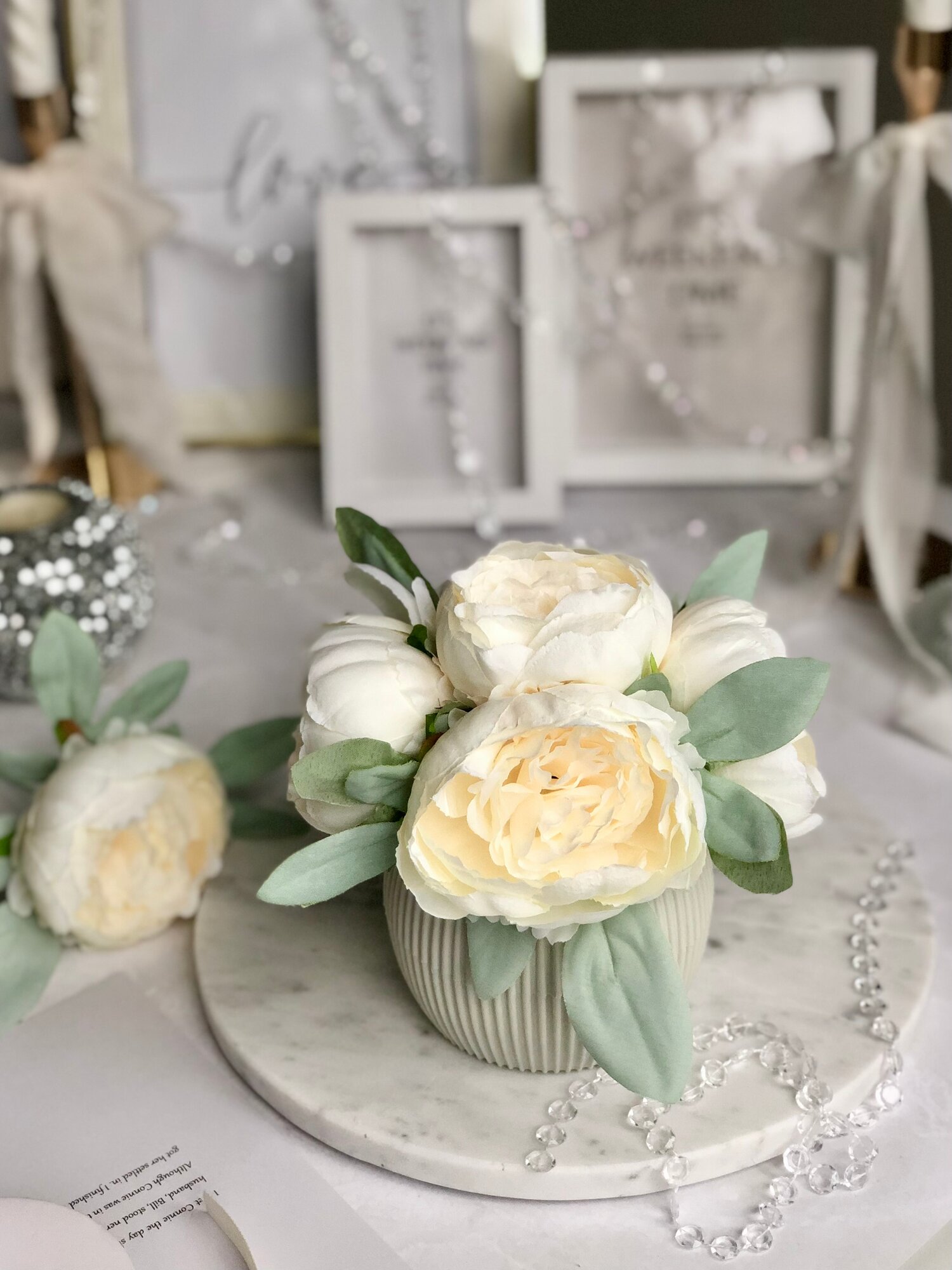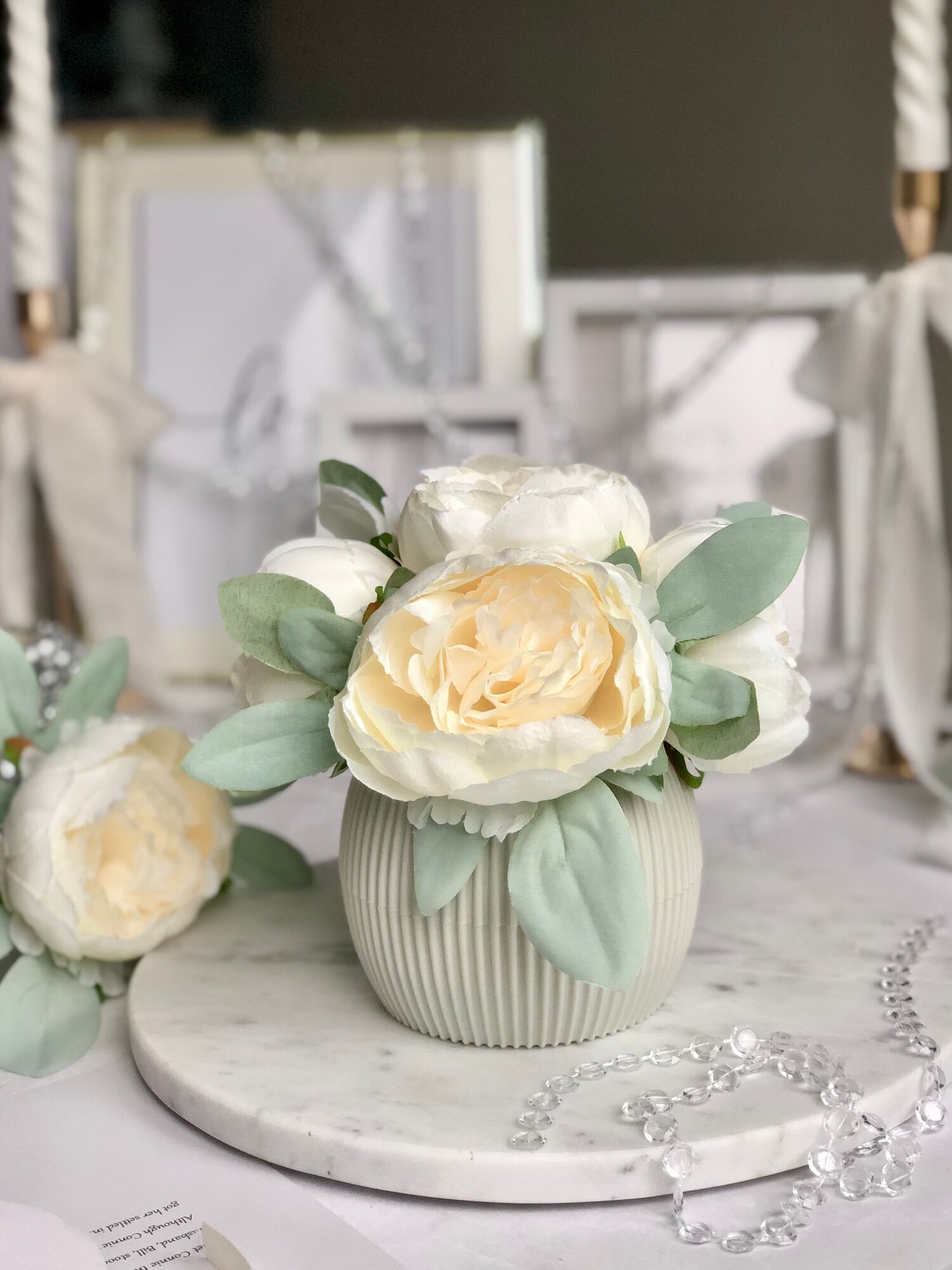 Купить Искусственные пионы в кашпо / Искусственные цветы в горшке / Цветочная композиция для декора, 18 см, кремовый