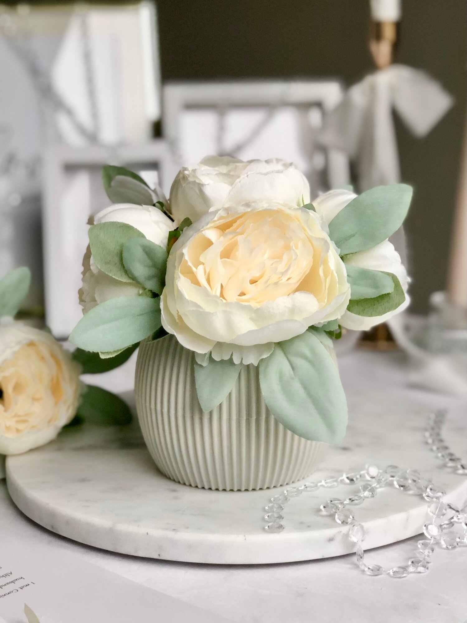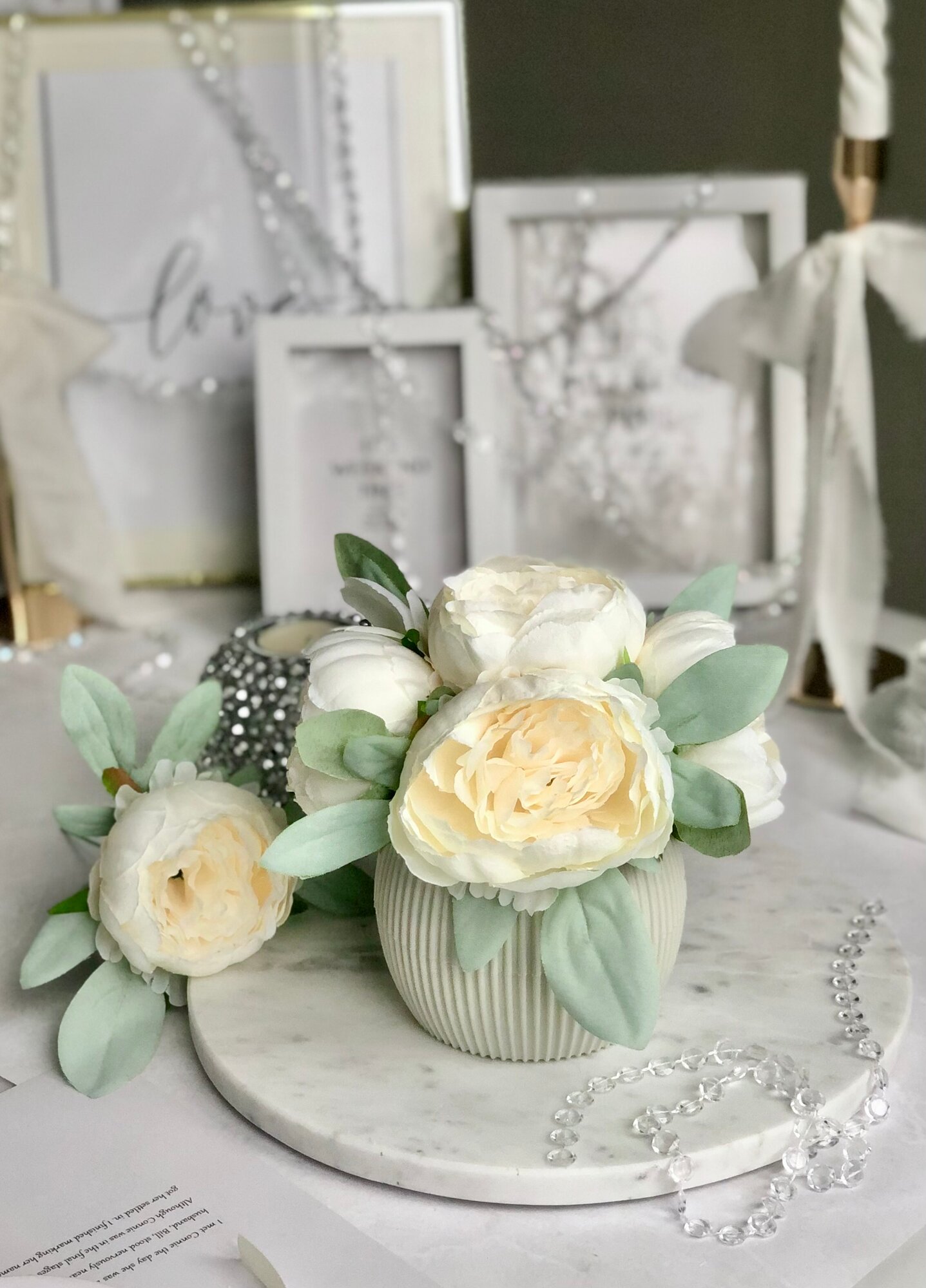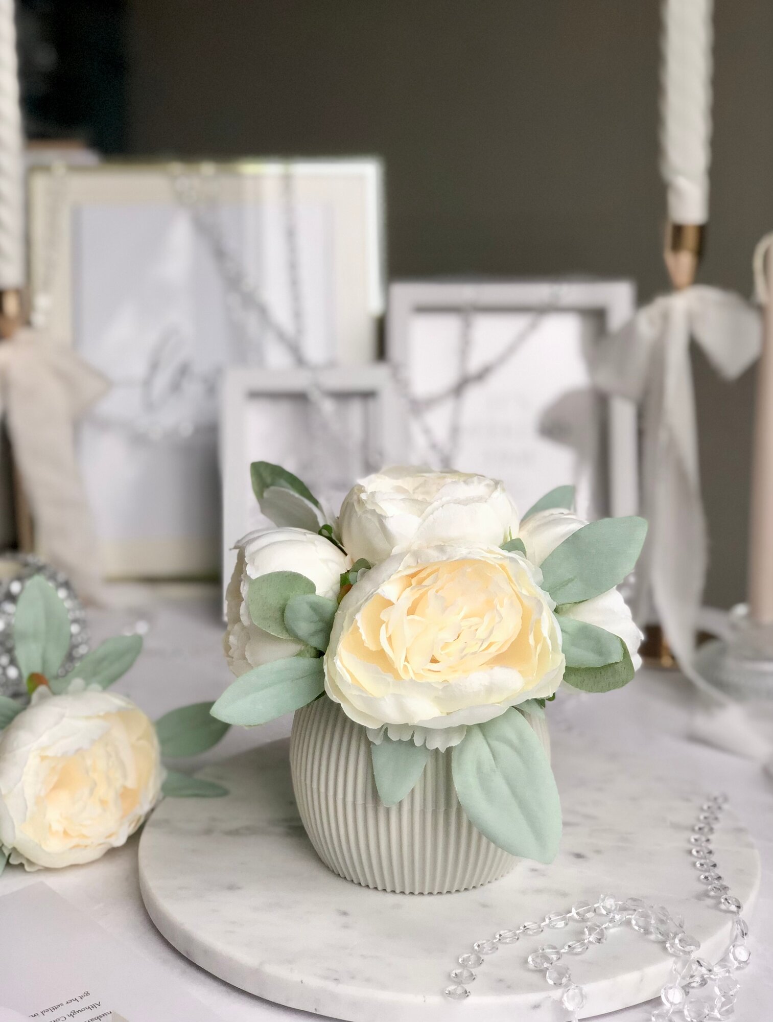 Купить Искусственные пионы в кашпо / Искусственные цветы в горшке / Цветочная композиция для декора, 18 см, кремовый