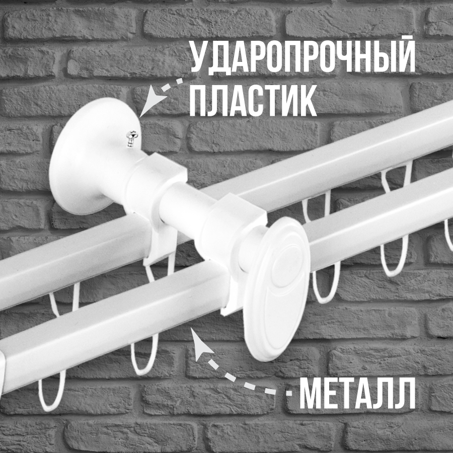 Карниз для штор металлический профильный Delfa Капри, двухрядный, белый, 200 см интересное: