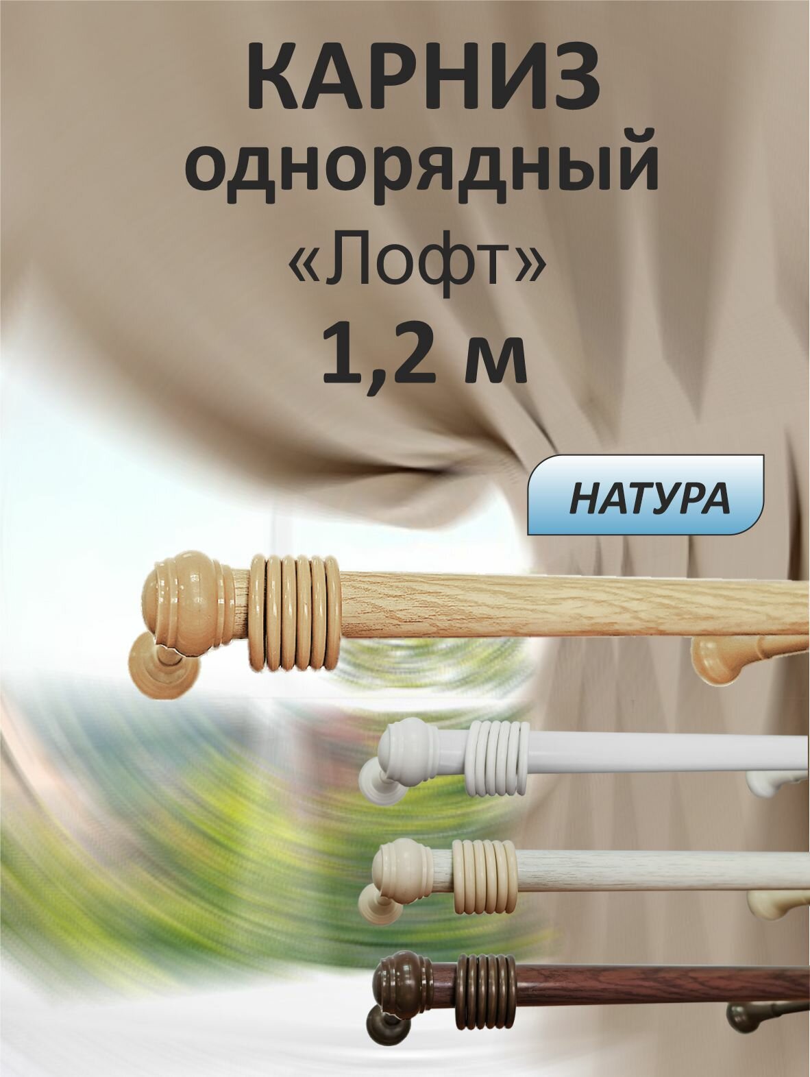 СохранитьКарниз "Лофт" 120 см однорядный, Натуральный, металл/пластик, прямой, для легких штор интересное: