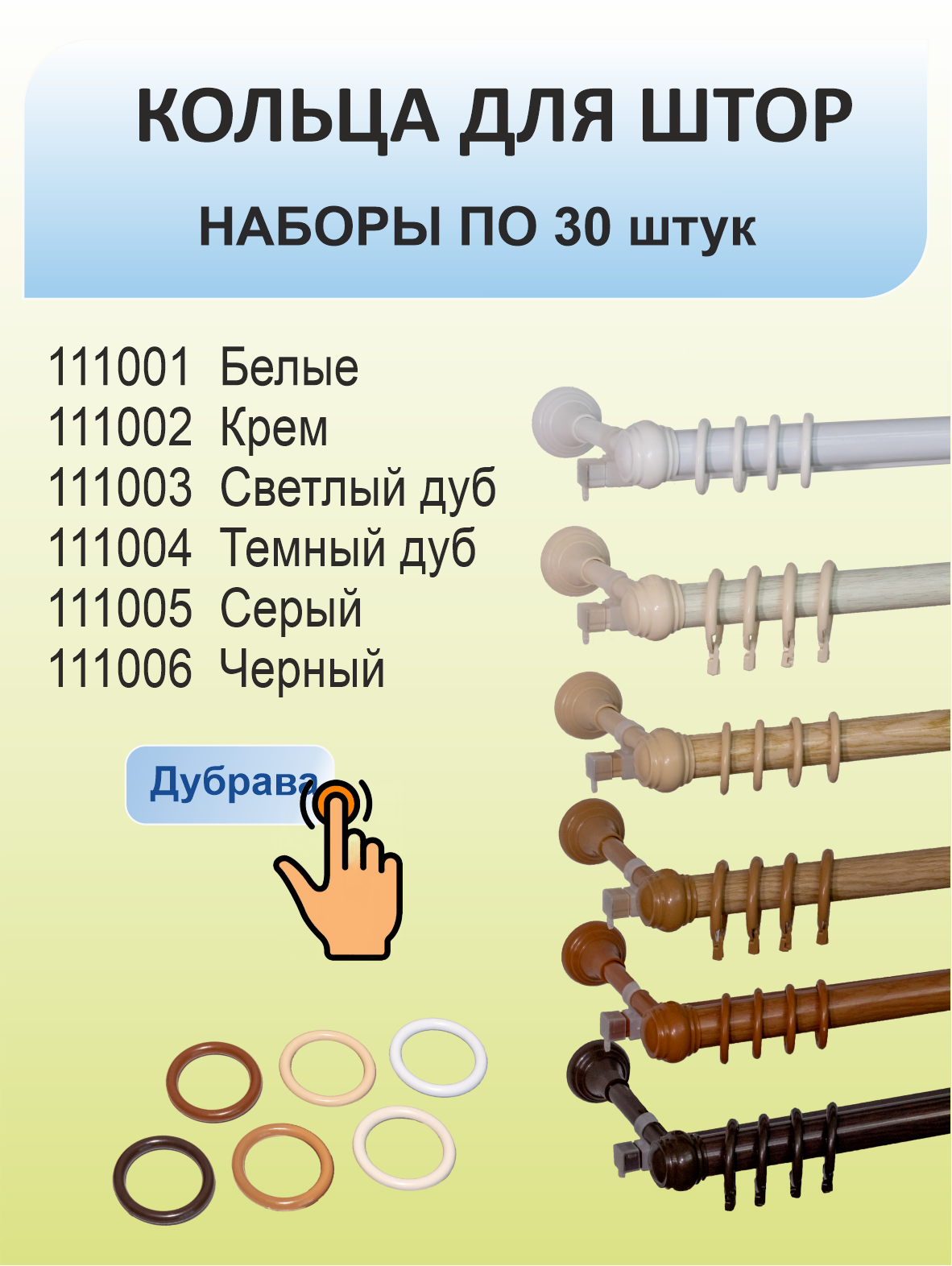 Кольца для карниза (дерево) с крючками на карниз д 28 мм-20шт