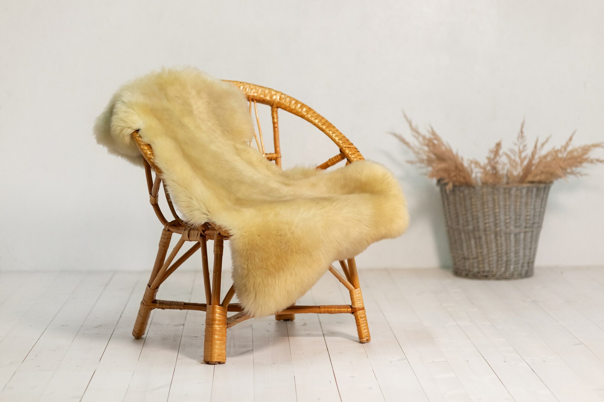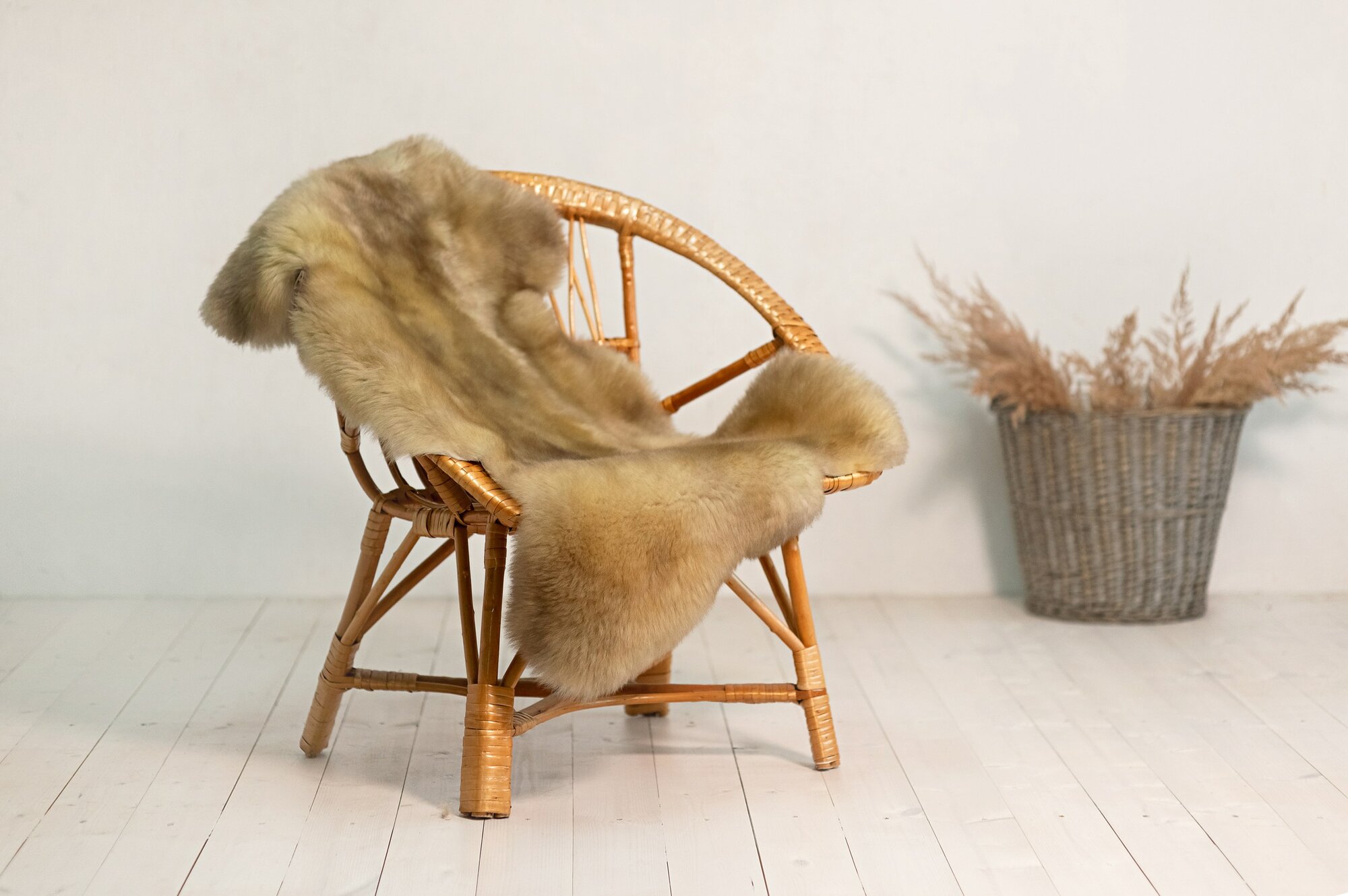 Шкура сибирской овцы Shkura-Dekor бежевая 120 см (с желтым подтоном)