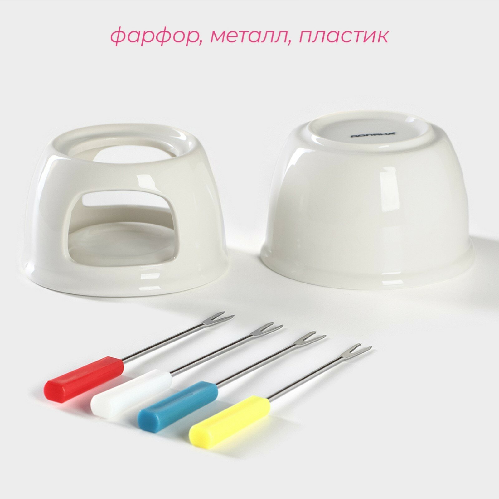 Набор для фондю "Глянец", 6 предметов: чаша 400 мл, подставка, 4 шпажки, керамика, белый