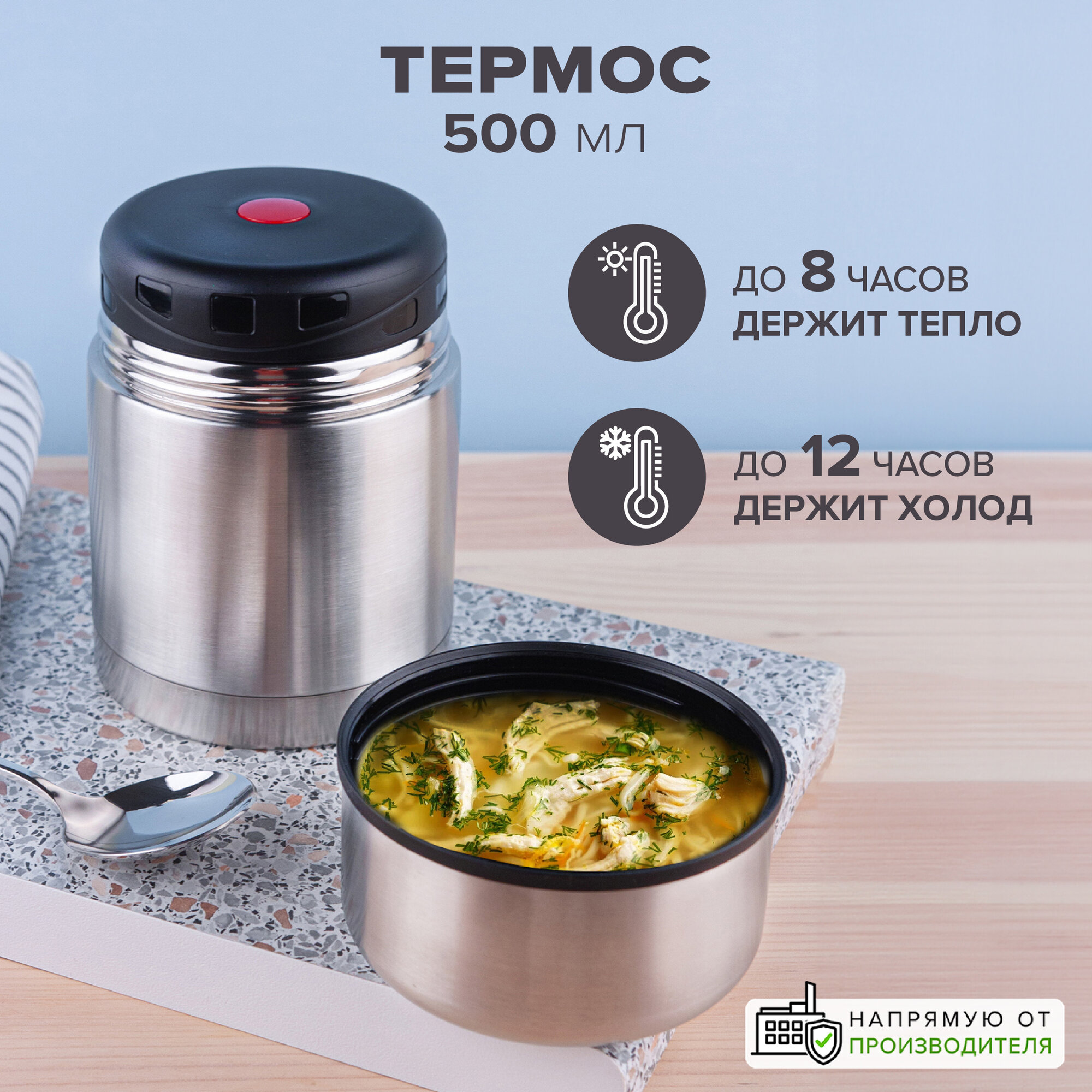 Термос для еды, 0,5 л, крышка-чашка, вакуумный интересное: