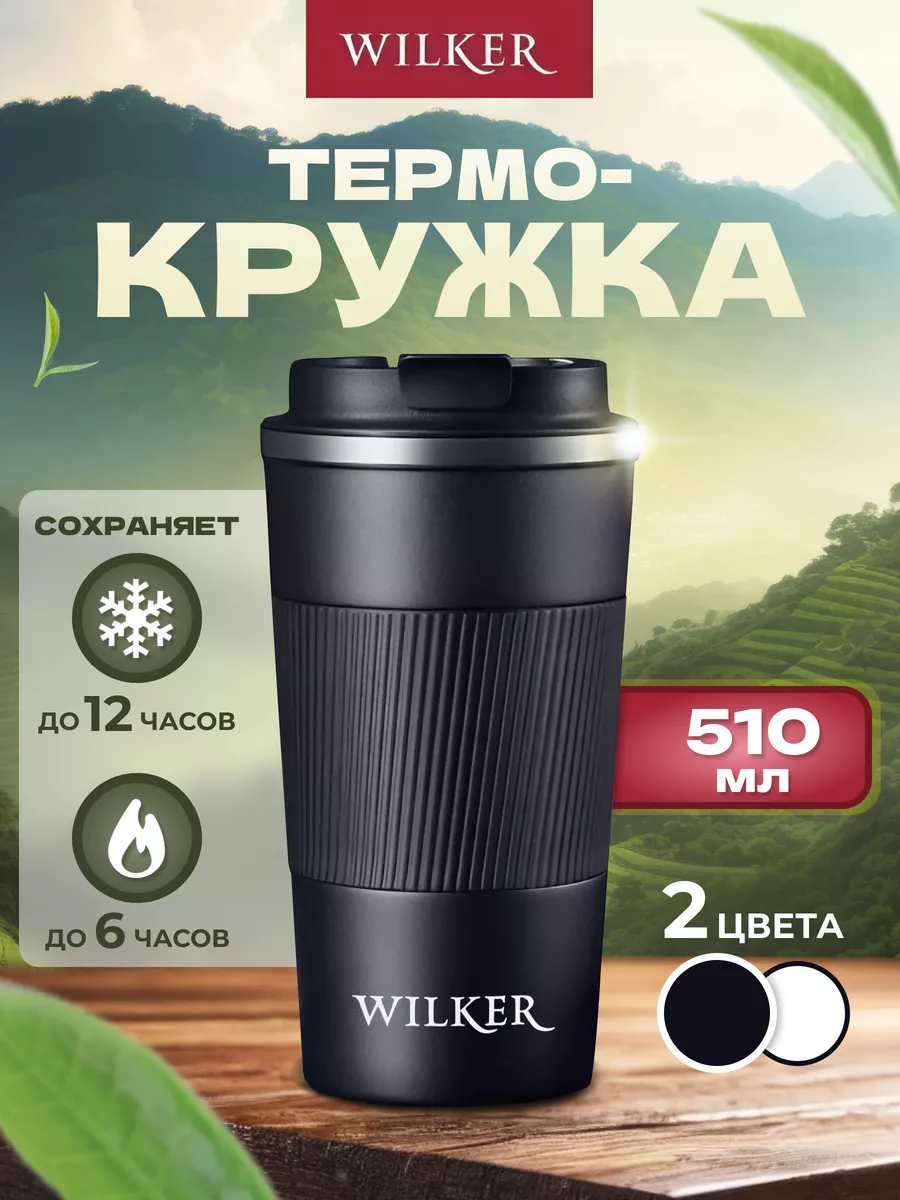 СохранитьWilker Автомобильная термокружка черная 510 мл для чая и кофе интересное: