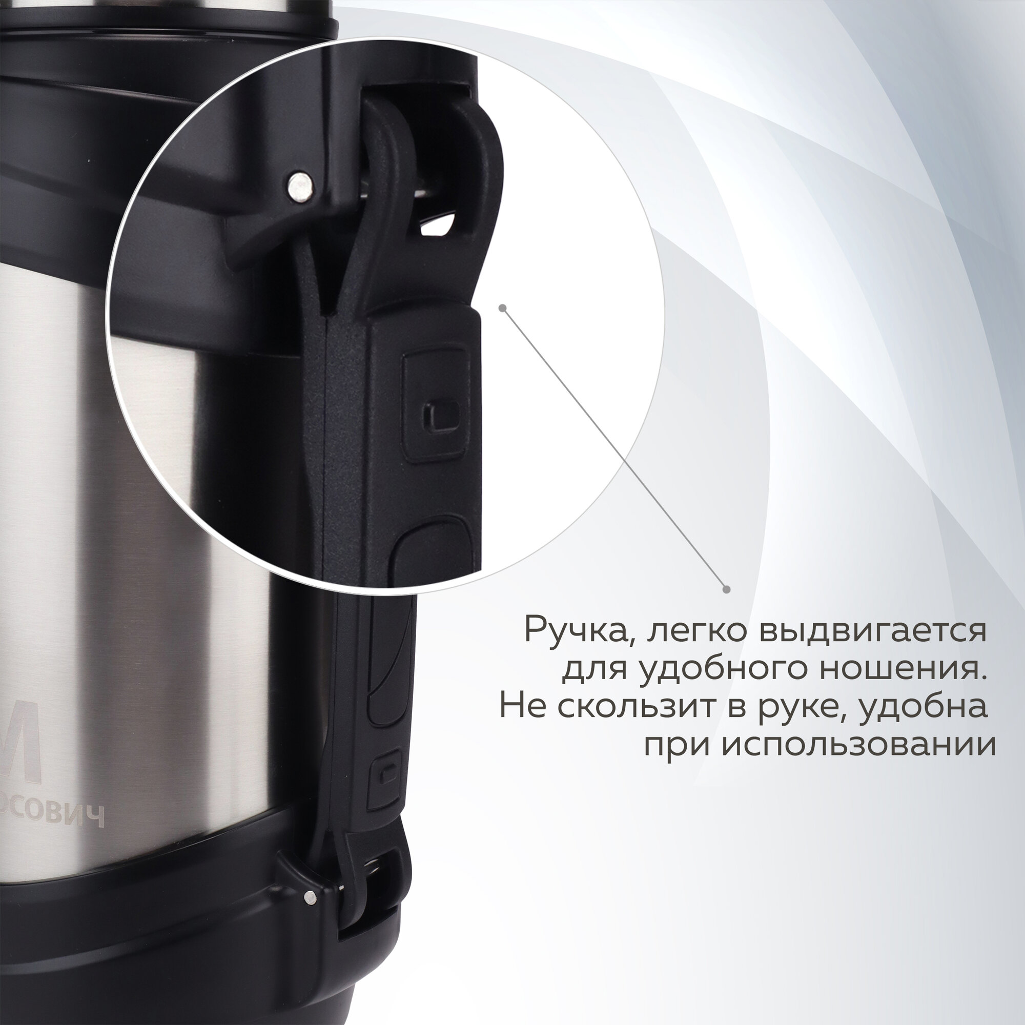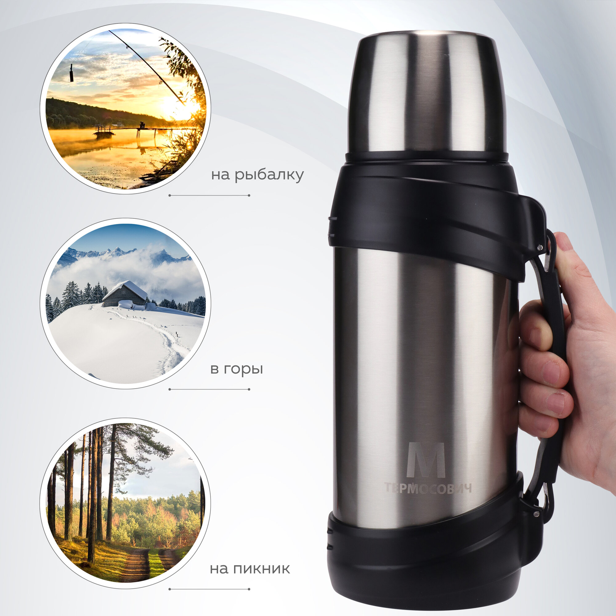 Термос, 2 литр, для чая, кофе и воды, большой, металлический, широкое горло, серый, Термосович интересное: