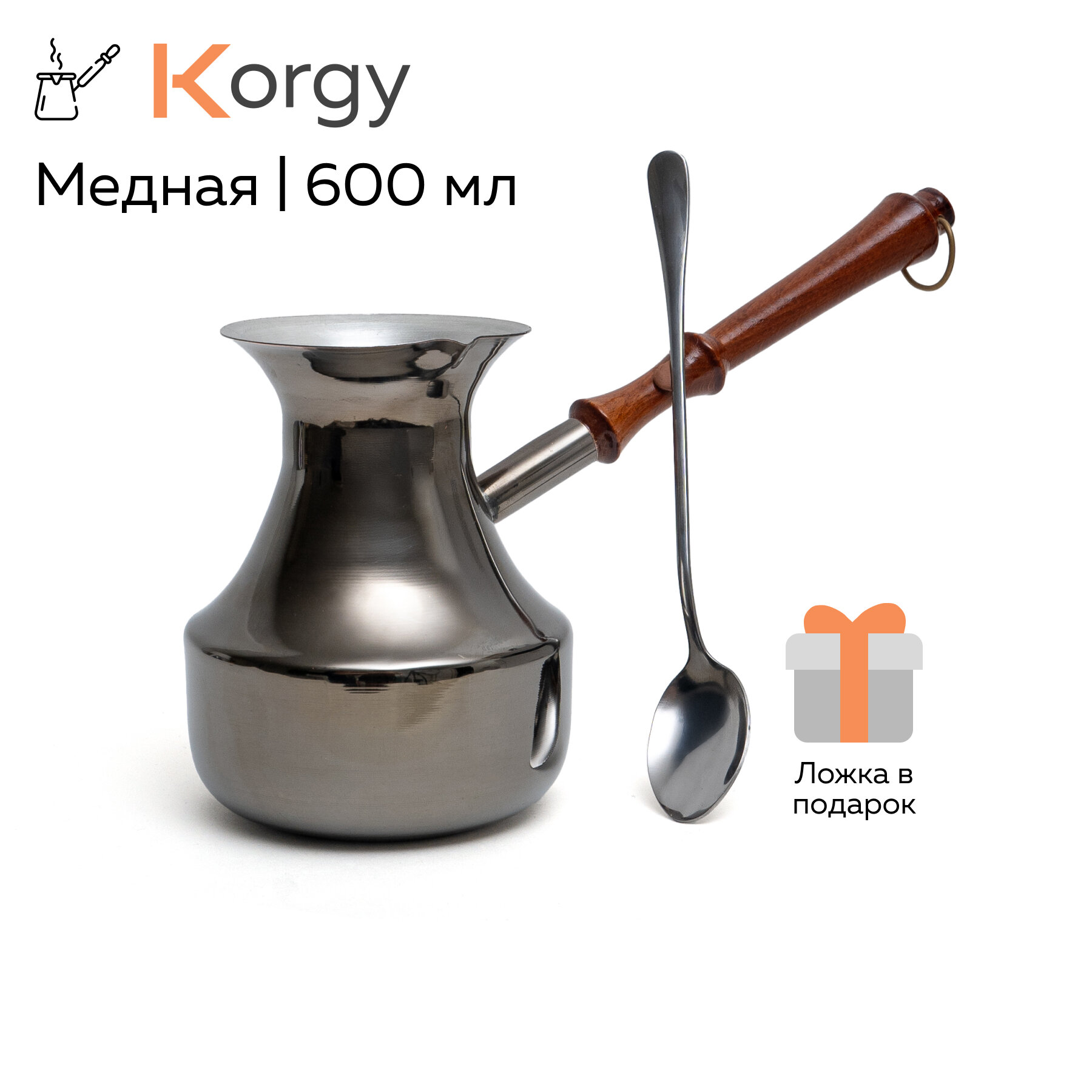 Турка для кофе Korgy медная джезва 600мл с ложкой в надежной упаковке