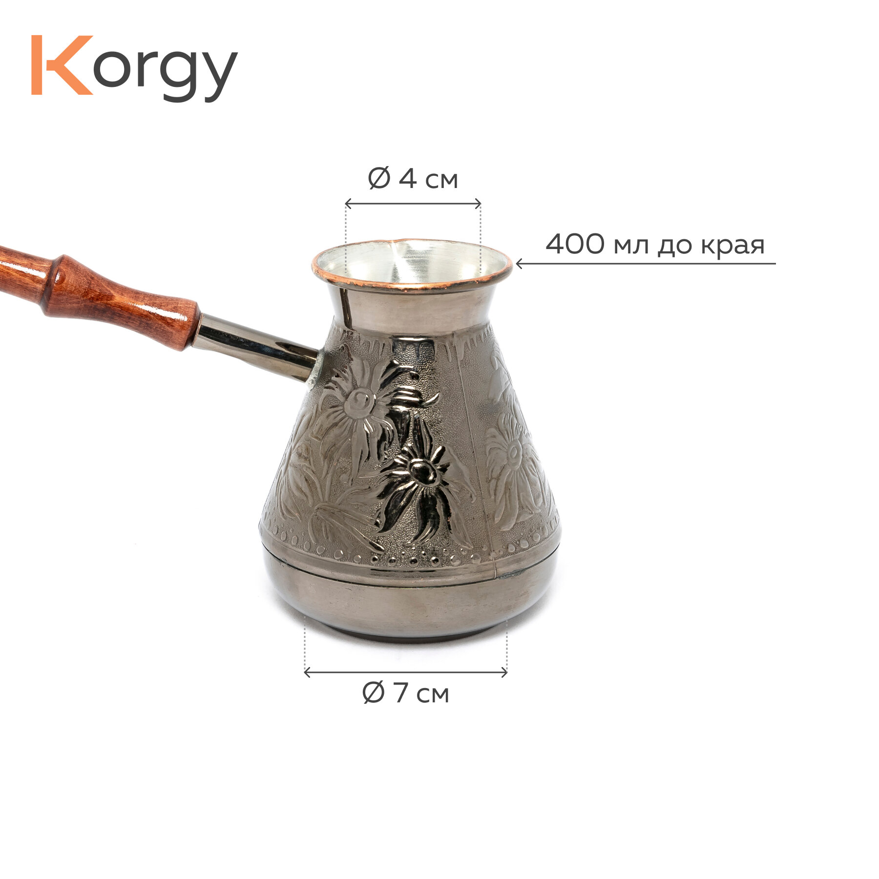 Турка для кофе Korgy медная 400 мл с ложкой, в надежной упаковке