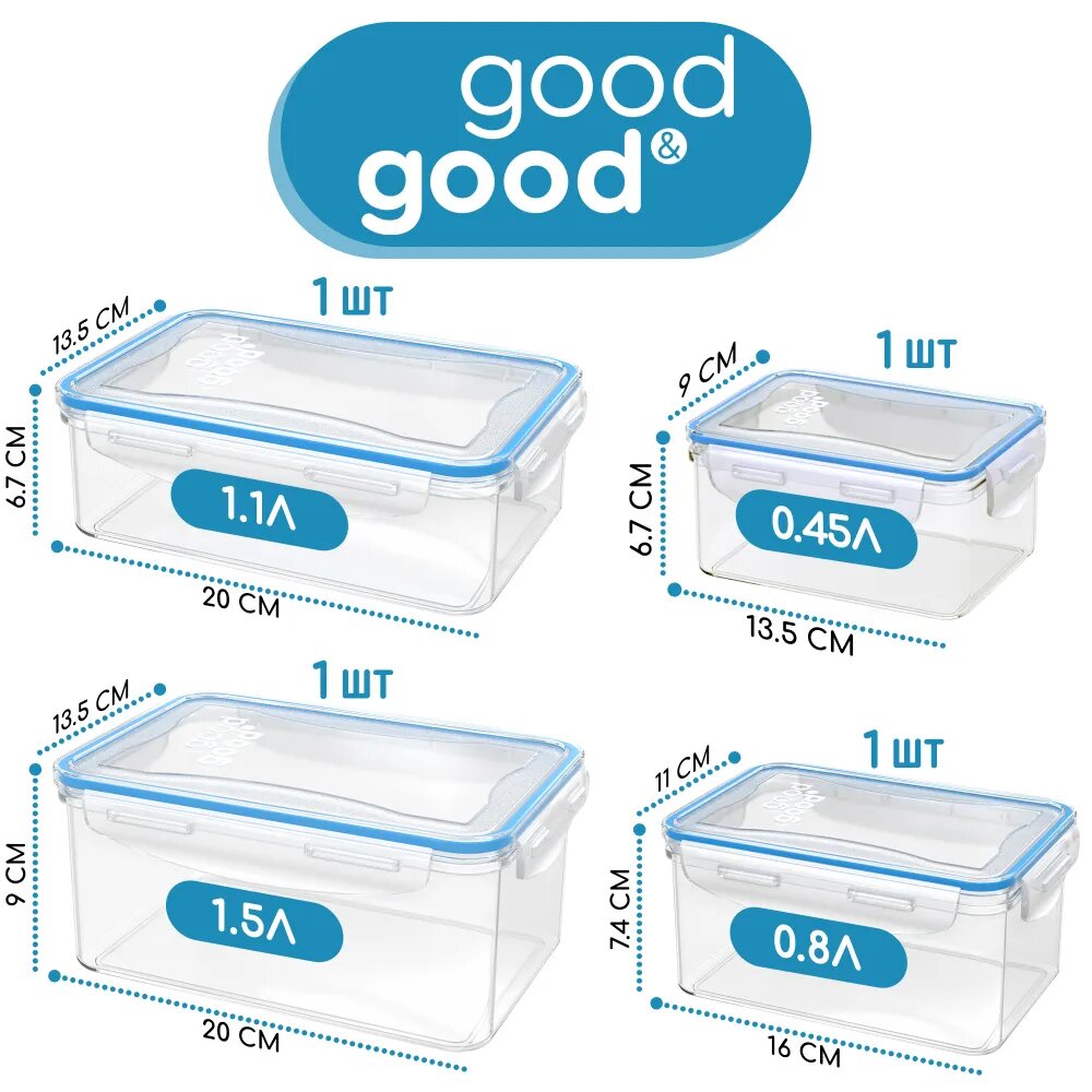 СохранитьКонтейнер для еды герметичный 4 шт good&good набор контейнеров для еды интересное: