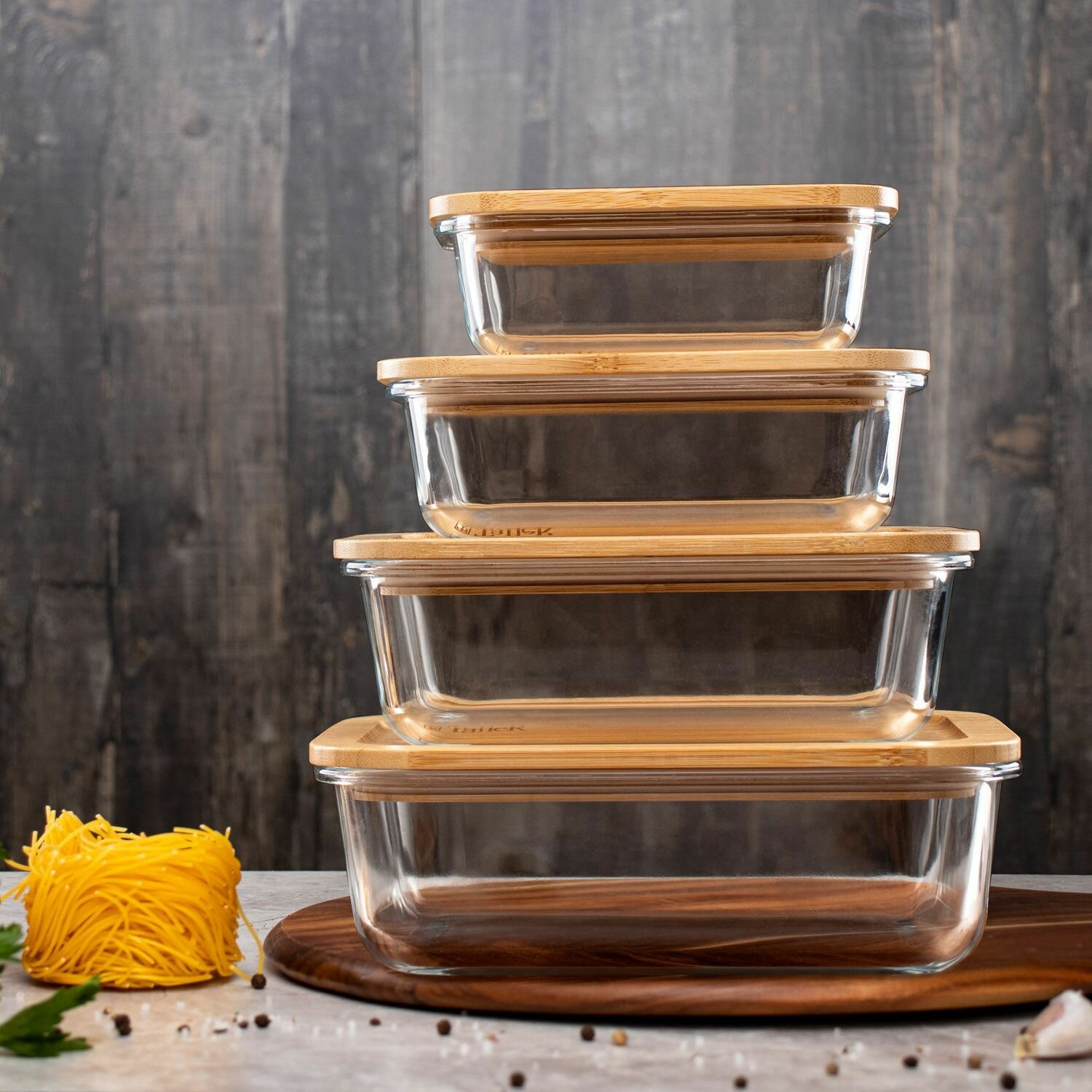 Контейнер для еды стеклянный TalleR TR-38134 1500 мл с бамбуковой крышкой