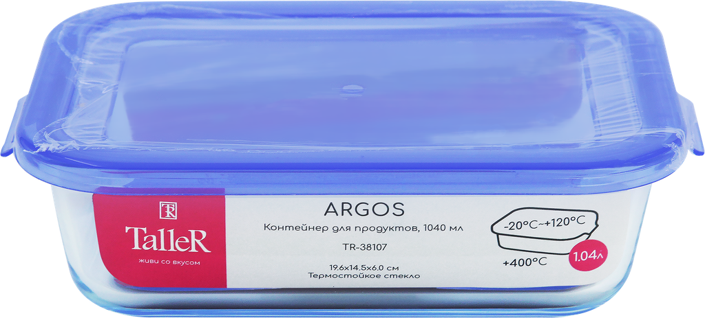Контейнер жаропрочный TALLER Argos 16.9х12.3х5.3см/640мл, боросиликатное стекло, пластик (38106)