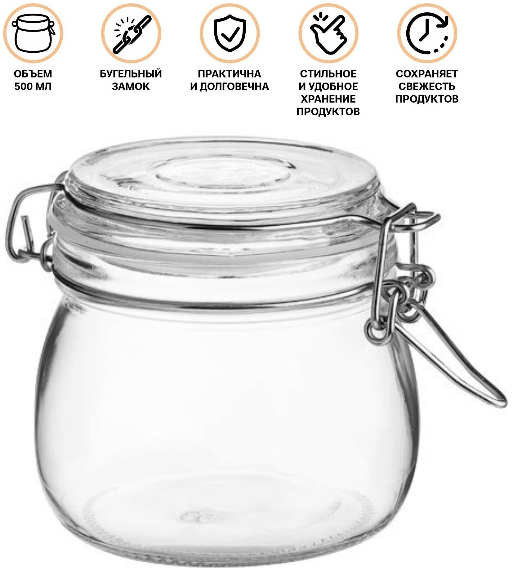 Банка для сыпучих продуктов стеклянная WECKER (Веккер) 1000 мл, PERFECTO LINEA (Банка с бугельным замком, 1000 мл.) (34-100111)