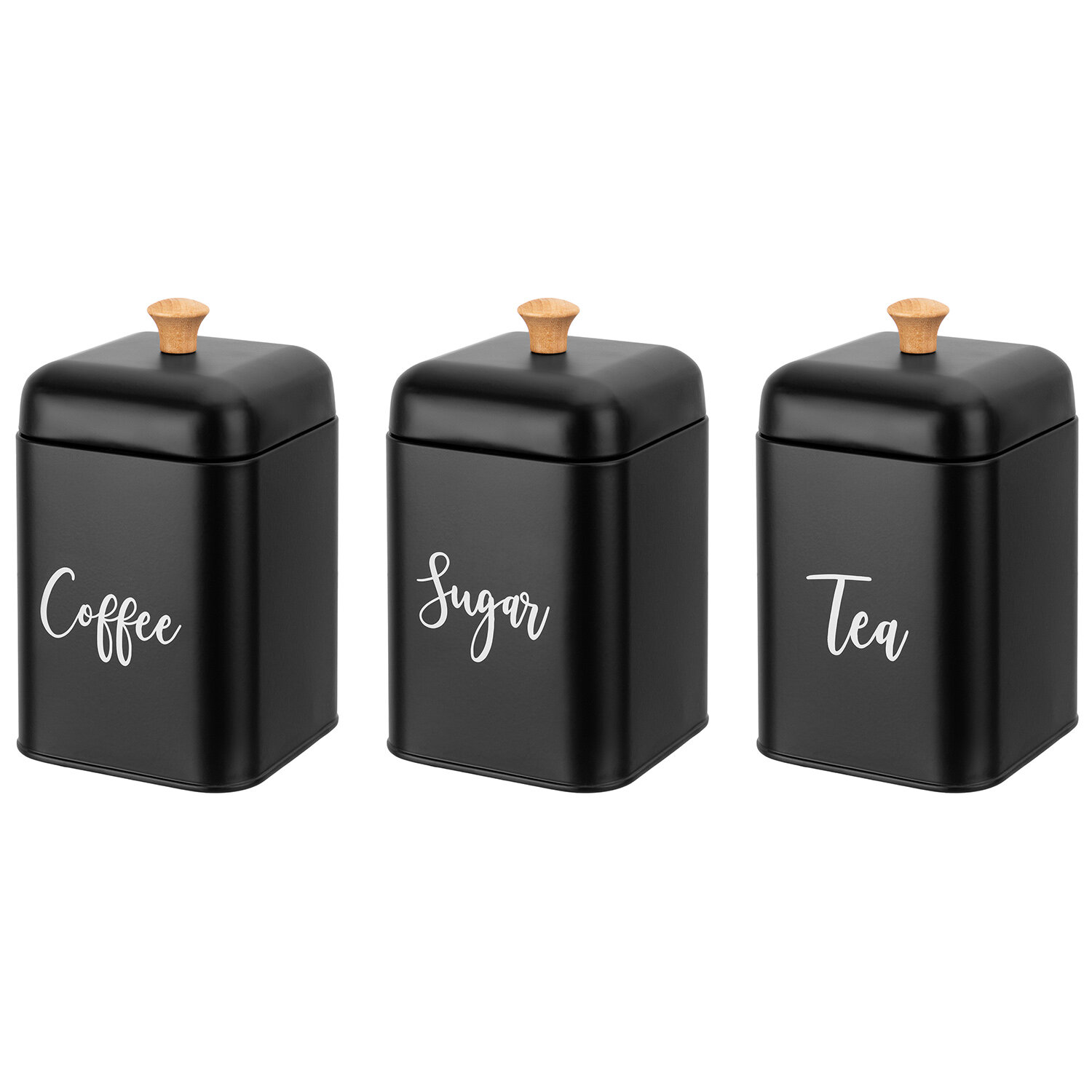 | Дополнительная информация | Набор 3 банок для сыпучих продуктов "Tea, coffee, sugar" с крышками, черный, 11,2х11,2х19 см 1,5 л - каждая, высота без крышки 13,5 см, металл. Не рекомендуется использовать абразивные моющие средства. |