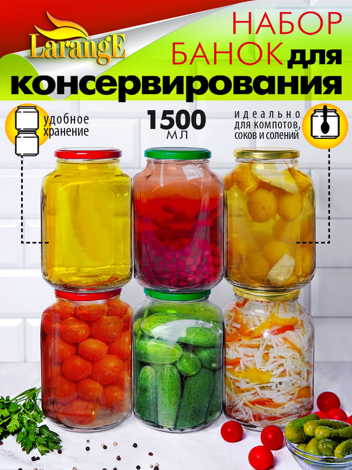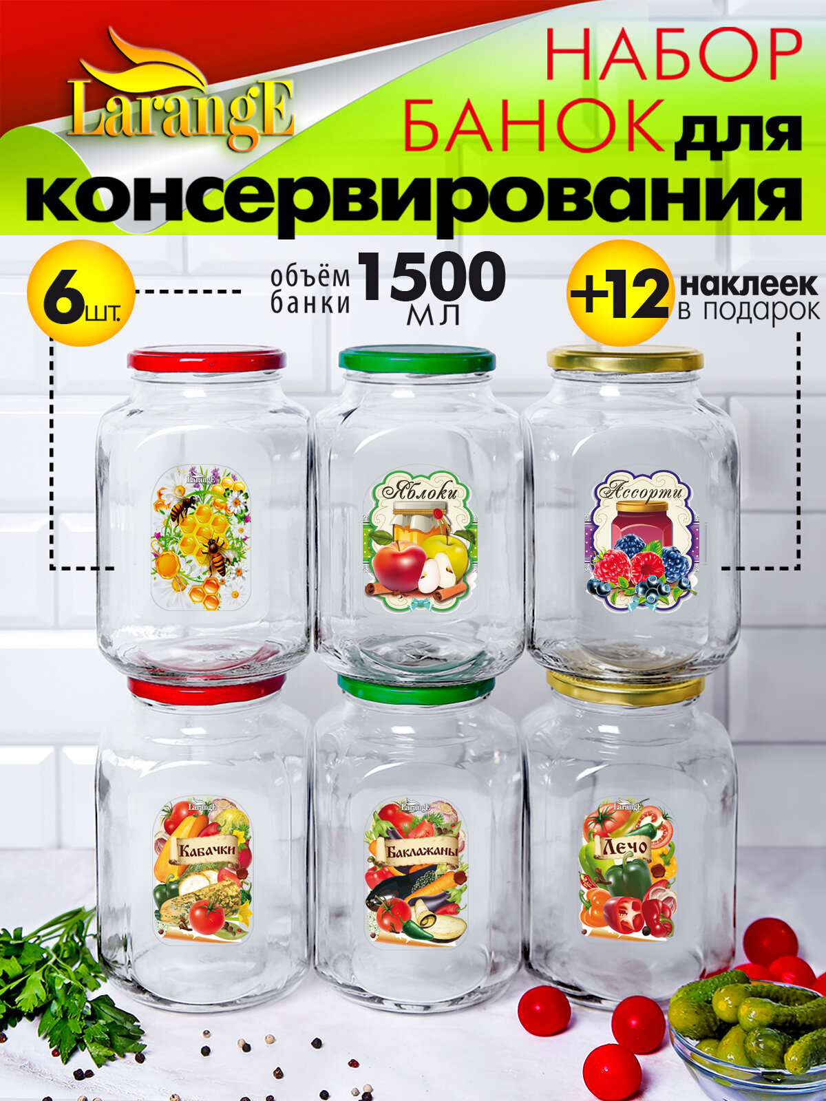Купить Банки для консервирования винтовые с крышками и наклейками 6 шт по 1,5 л