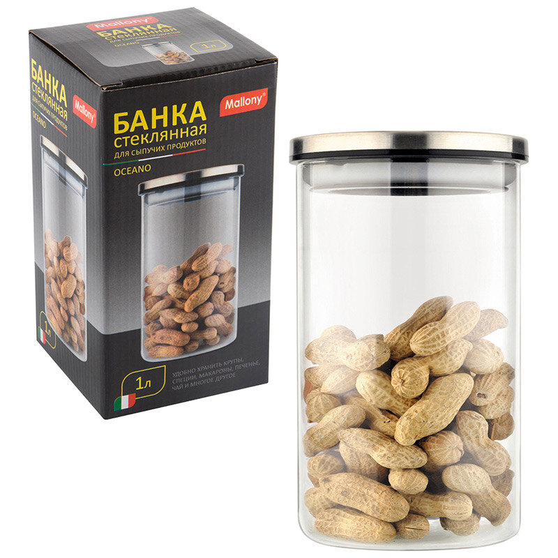 Банка Mallony стеклянная для сыпучих продуктов с крышкой из нерж стали OCEANO 1 л