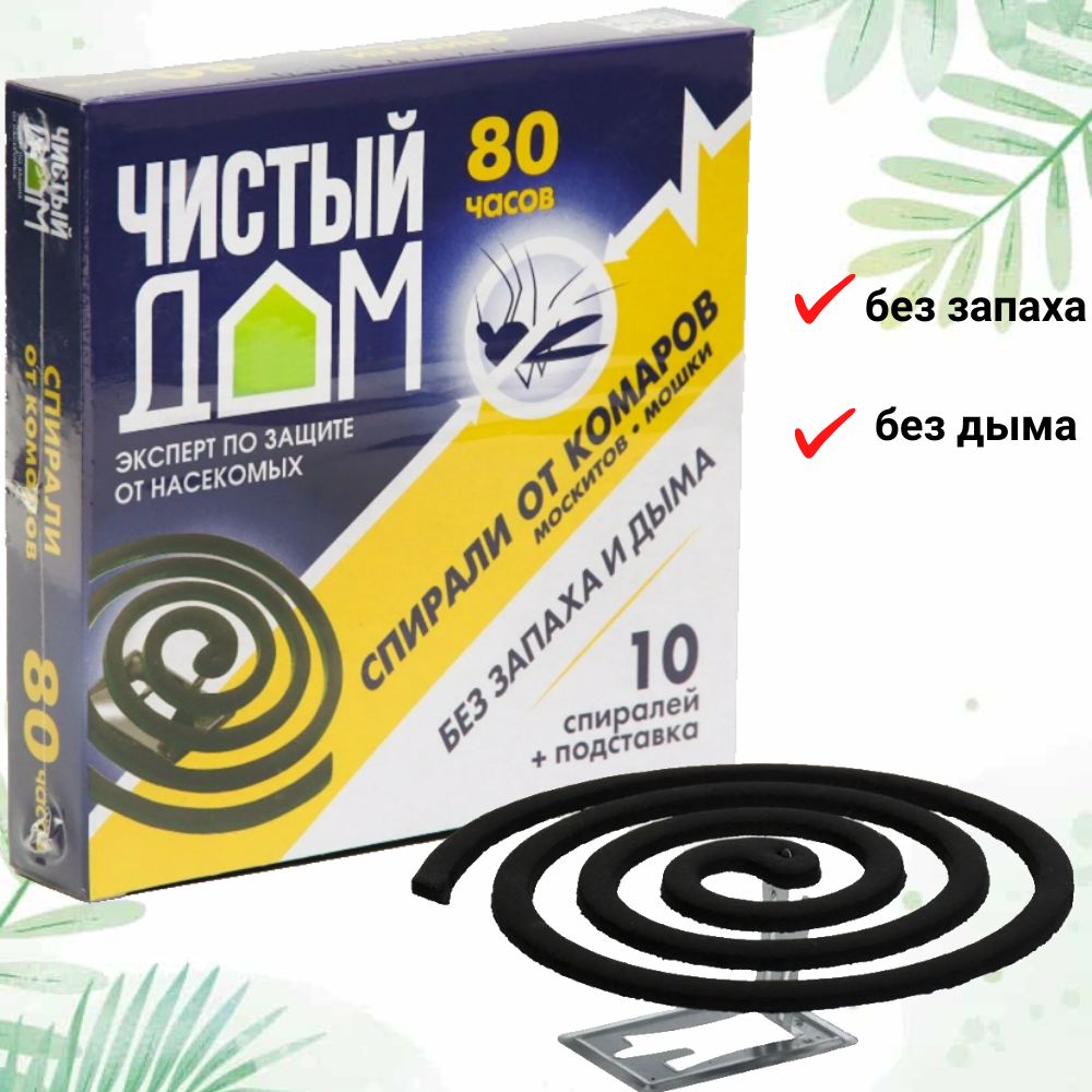 Спирали от комаров бездымные, 10 штук в упаковке, Чистый дом