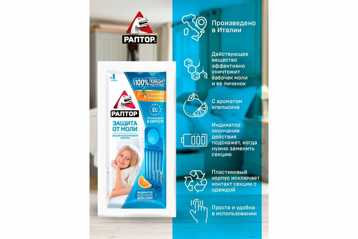 Гелевая секция от моли Апельсин, раптор Двойной эффект, средство от моли, 1 шт