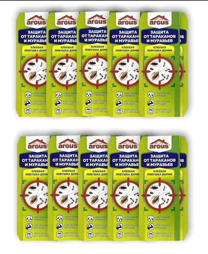 Аргус клеевая ловушка от тараканов и муравьев (домик), комплект из 10 шт.