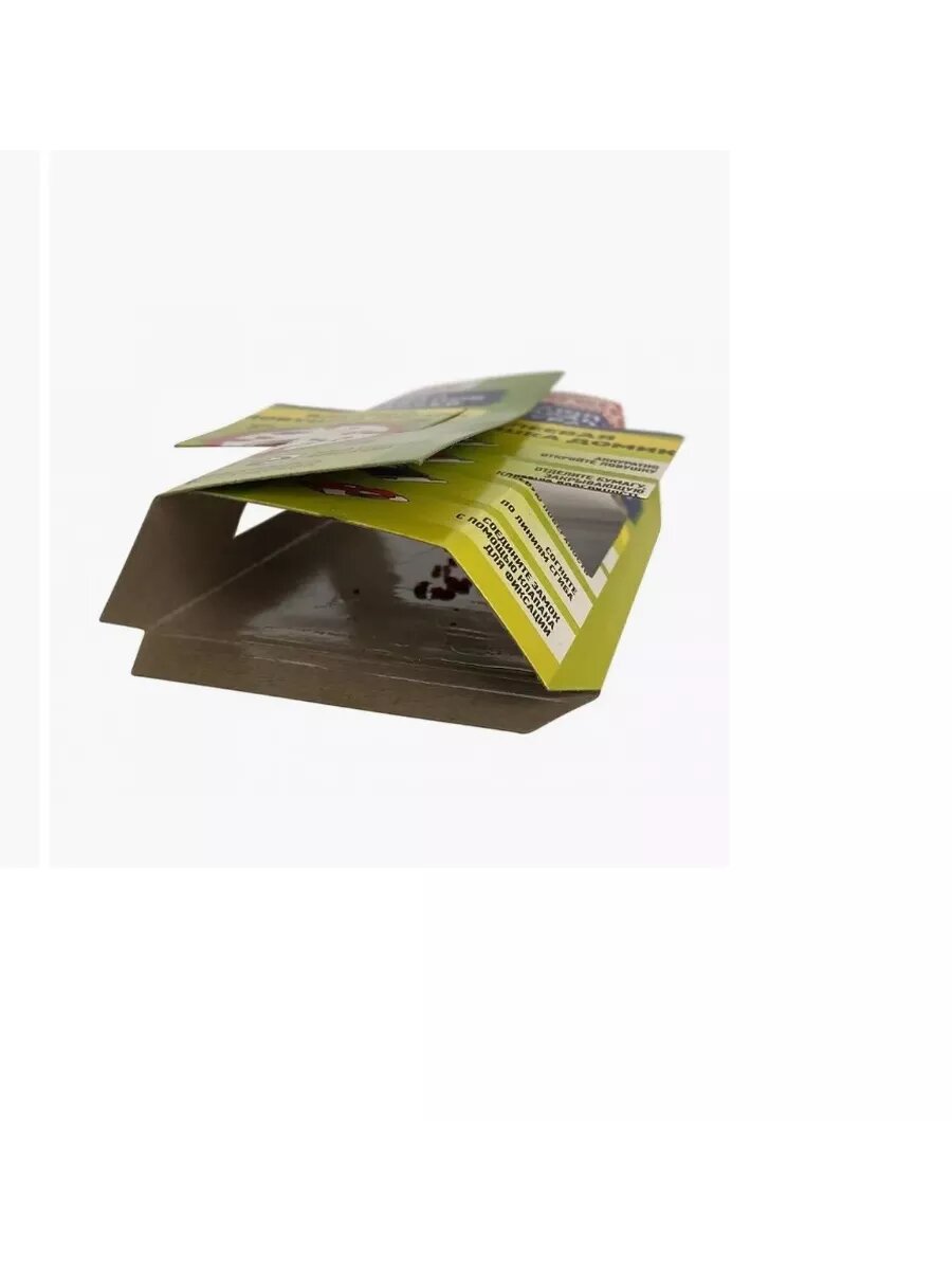 | Способ применения | аккуратно открыть ловушку и отделить бумагу, закрывающую клей; с помощью клапана для фиксации сомкните замок; установите ловушку вблизи стен; для достижения лучшего результата рекомендуется использовать несколько ловушек одновременно; ежедневно осматривайте ловушки - для своевременной утилизации |