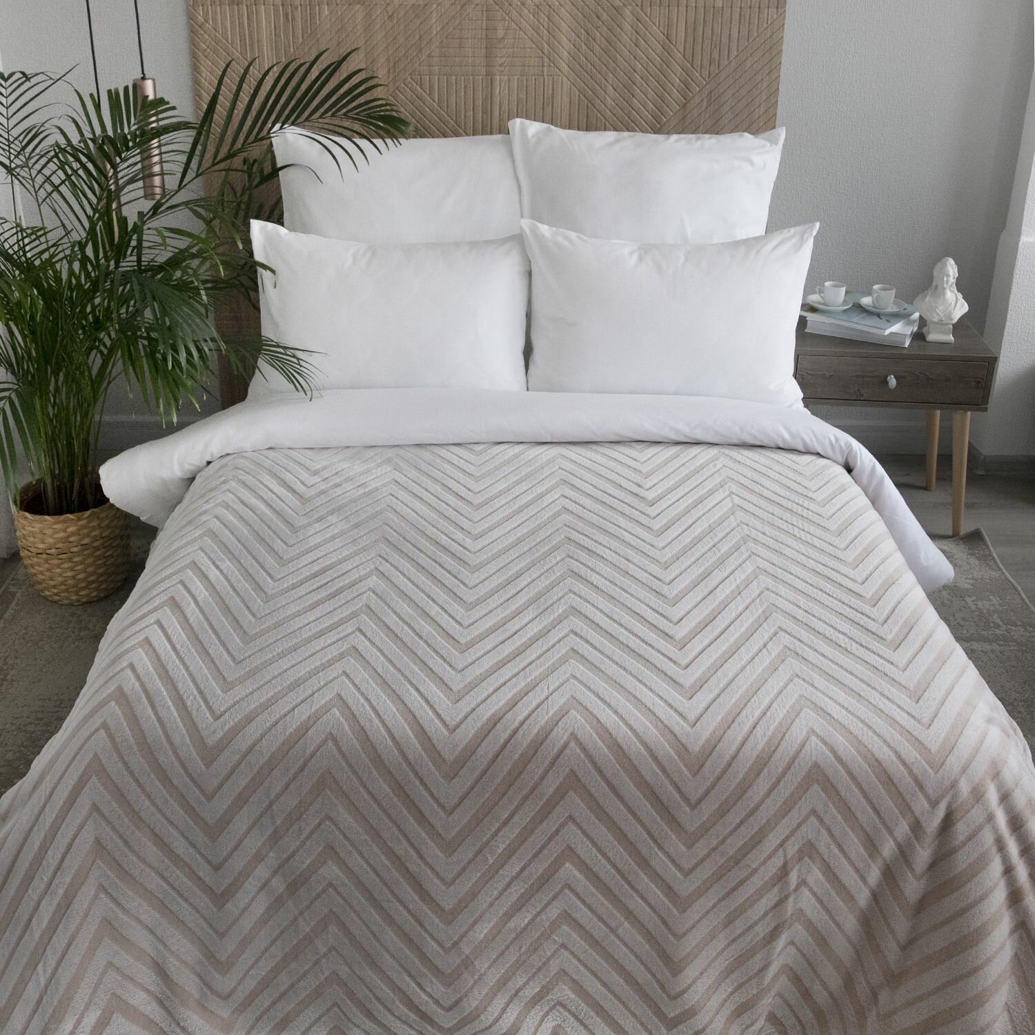 Плед на кровать 200х220 см "Зебра", велюровый бежевый