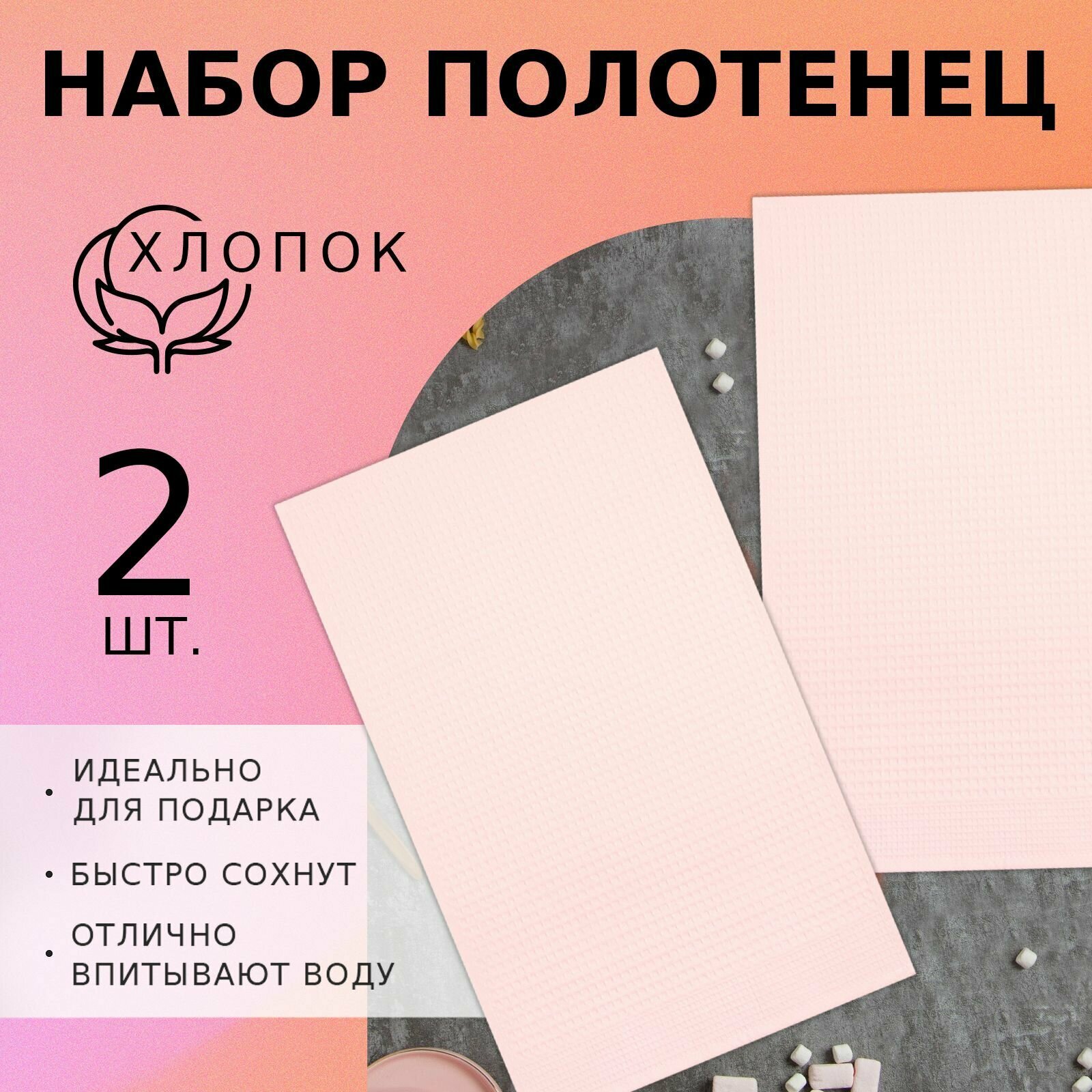 Набор кухонных полотенец "Доляна", цвет пудровый, 35х60см-2шт, 100% хл, вафля, 220 гр/м2