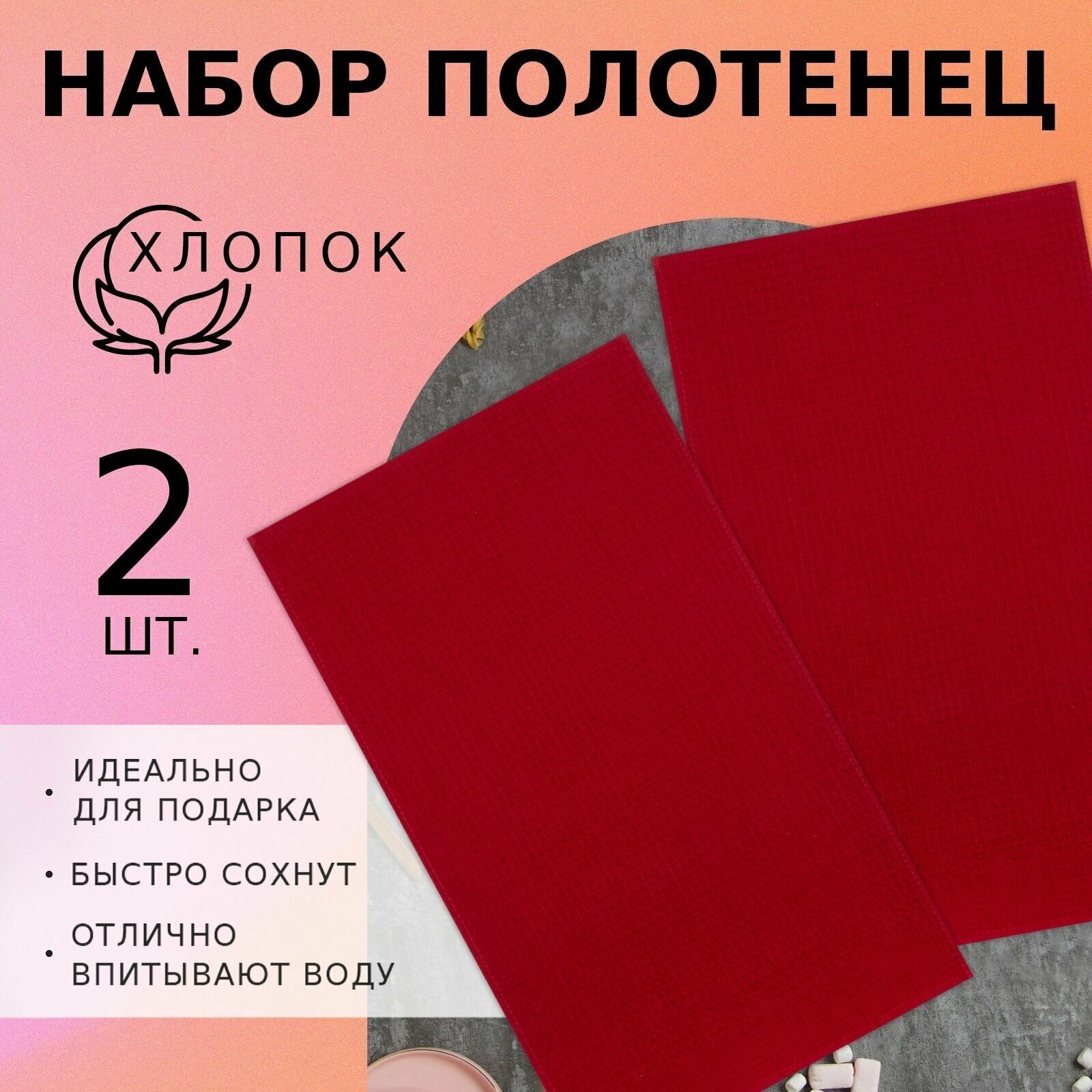 Набор кухонных полотенец цвет бордовый, 35х60см-2шт, 100% хлопок, вафля, 220 гр/м2