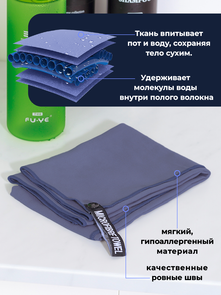 Полотенце спортивное OCEAS из микрофибры ,быстросохнущее для фитнеса и йоги, 80х40 см, синий