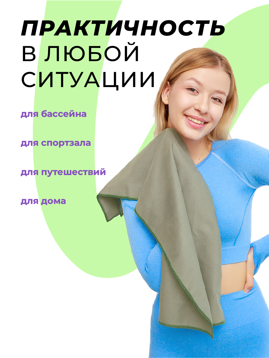 СохранитьПолотенце спортивное OCEAS из микрофибры ,быстросохнущее для фитнеса и йоги, 80х40 см, хаки интересное: