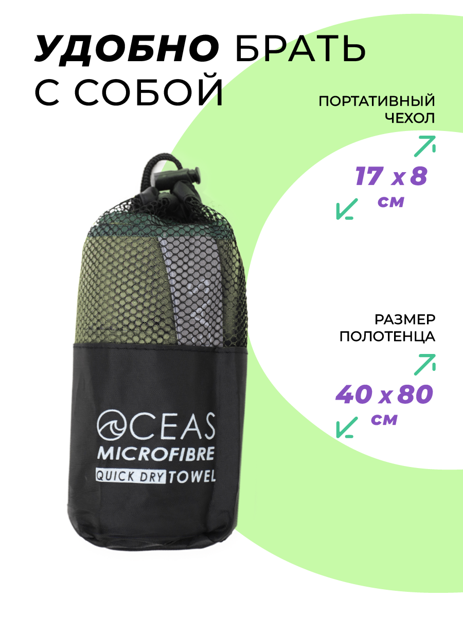 Полотенце спортивное OCEAS из микрофибры , быстросохнущее для фитнеса и йоги, 80х40 см, хаки