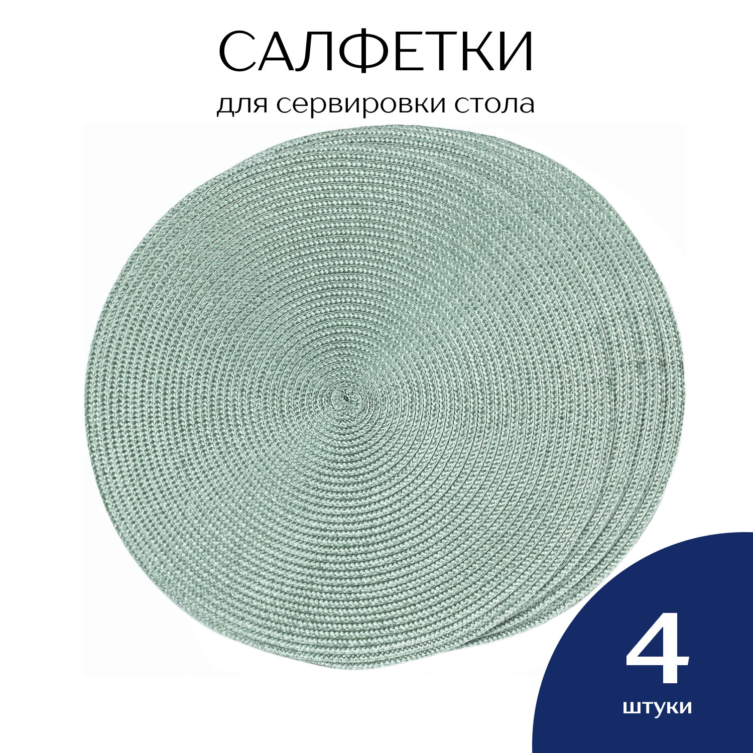 Салфетки на стол сервировочные круглые, комплект плейсматов, 4 шт серо-зеленый