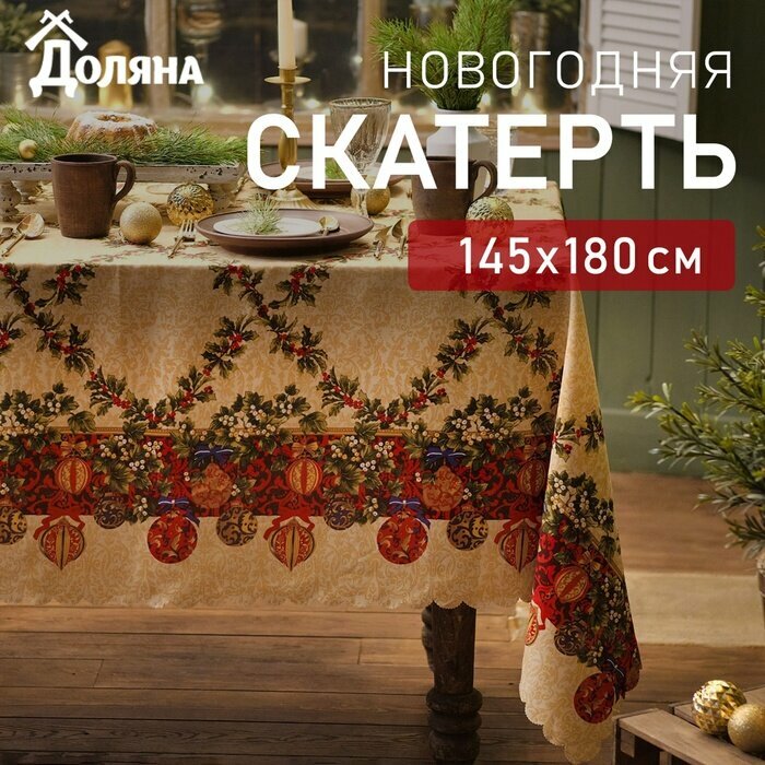 Скатерть Доляна "Праздничные украшения" 145*220 см, 100% п/э