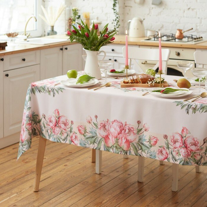 Купить Скатерть «Доляна» "Рeonies flowers", 145*215 +/- 3 см, 100% п/э