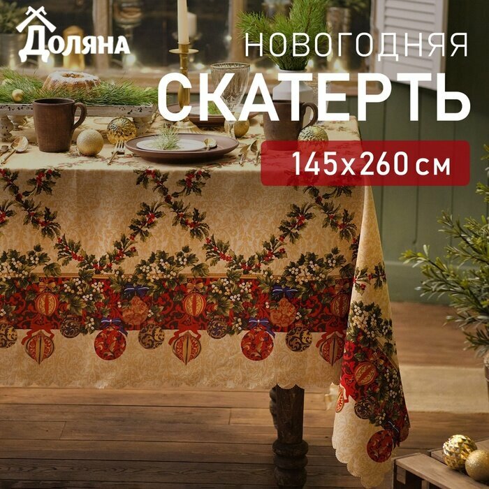 Купить Доляна Скатерть новогодняя Доляна "Ёлочные игрушки" 145*260 см, 100% п/э