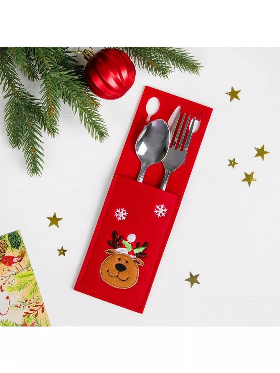 Купить Новый год! Конверт для столовых приборов "Олень в колпаке"