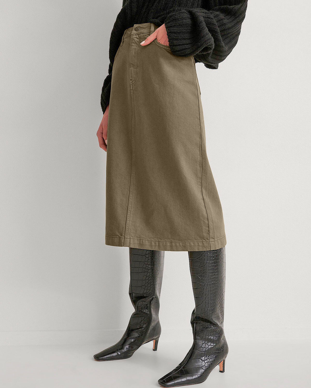 Купить Ткань джинсовая стрейч для шитья и рукоделия 1 м*147 см, цвет хаки