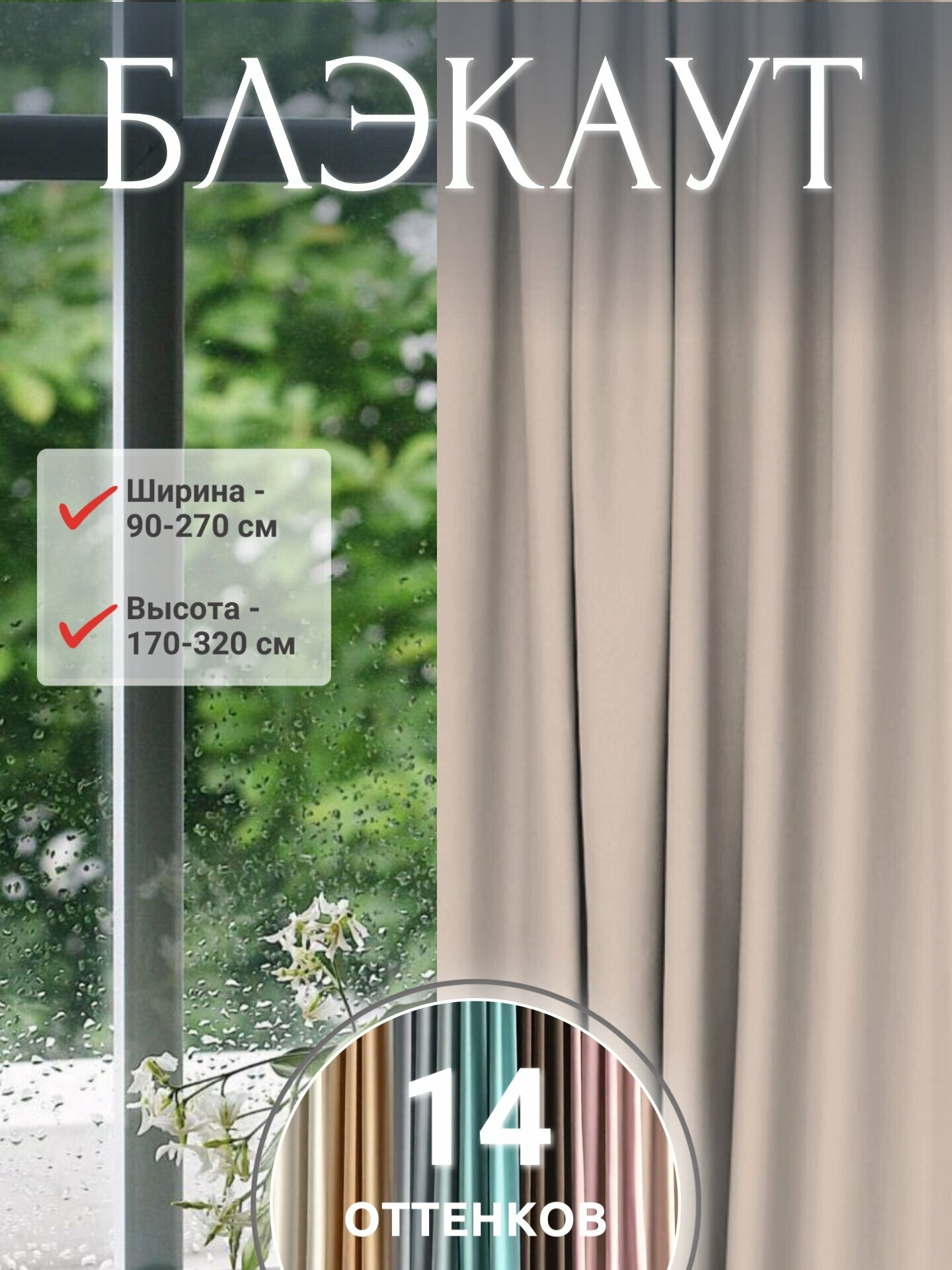 Штора светозащитная для комнаты и спальни "Блэкаут матовый бежевый" 270x320 на ленте