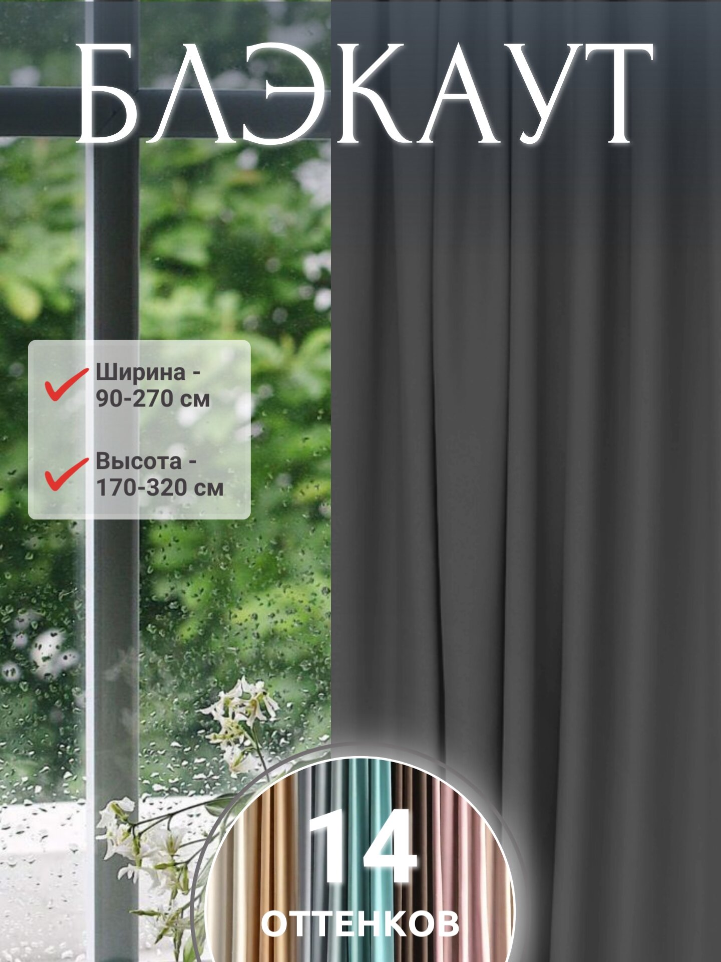 Штора светозащитная для комнаты и спальни "Блэкаут матовый графит" 270x320 на ленте