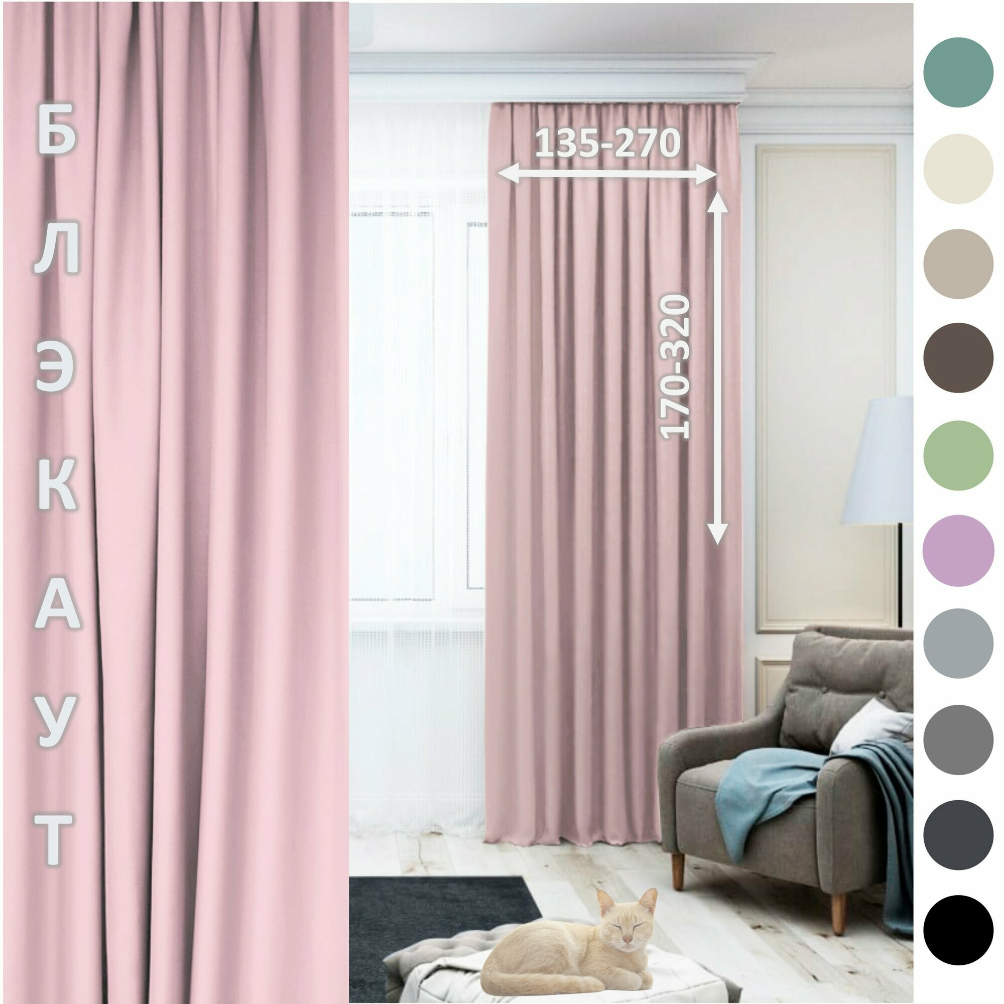 Штора светозащитная для комнаты и спальни "Блэкаут матовый розовый" 270x320 на ленте
